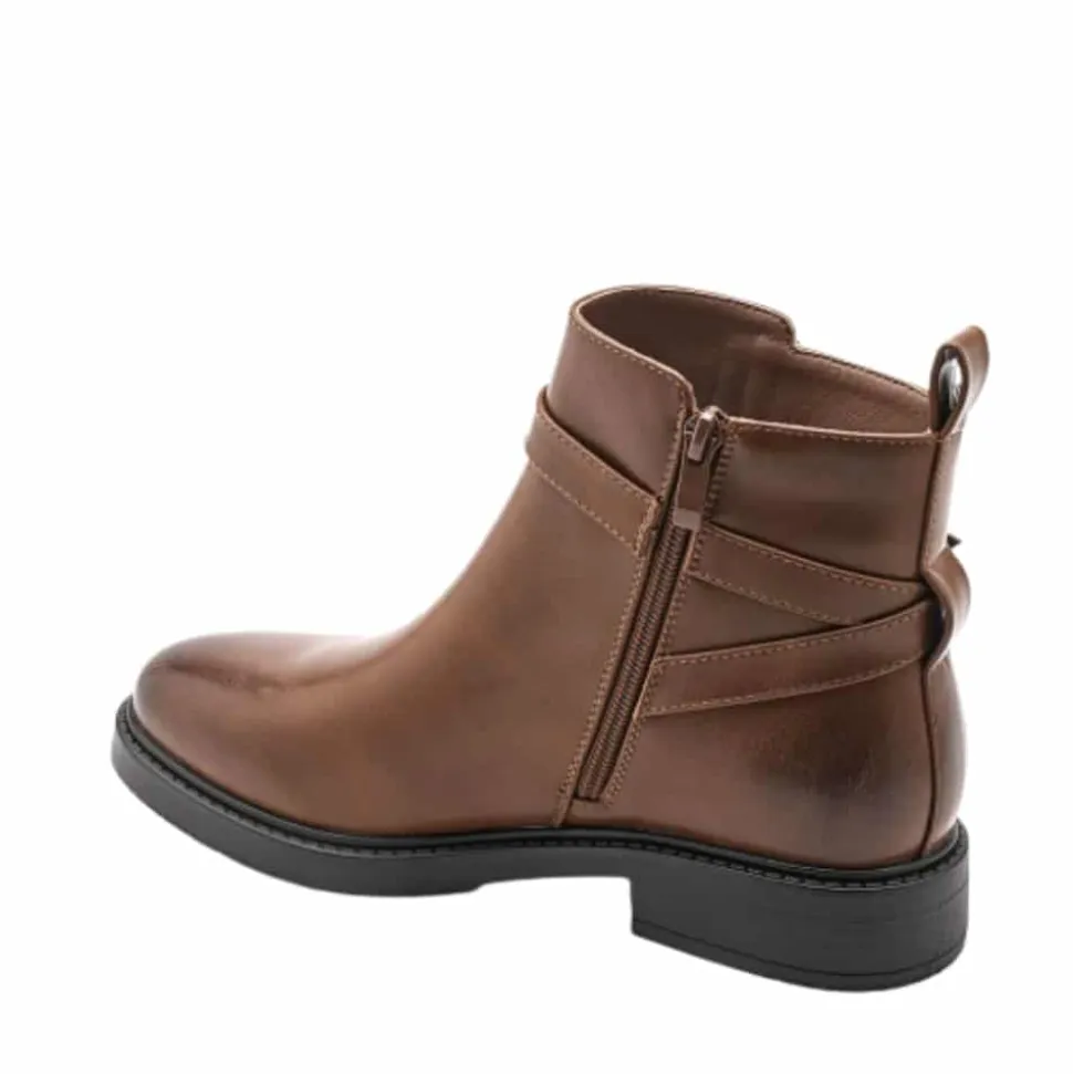 Amour støvle til dame i camel. Denne moderne ankelstøvle i camel er designet med en flot spænde på siden, som giver et elegant og feminint touch. Med en praktisk lynlås på indersiden kan støvlen nemt tages af og på, og indvendigt sørger den bløde indersål og let foring for god komfort hele dagen. Den lille blokhæl tilføjer et klassisk løft, som giver et stilfuldt udtryk samtidig med at komforten bevares.
