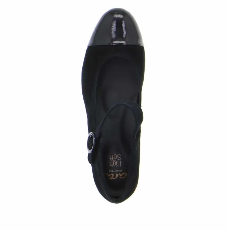 Opdag disse elegante pumps fra ara, der kombinerer klassisk design med alsidighed. De smukt udformede pumps tilpasser sig let forskellige stilarter, og med laklæder spids der tilføjer en elegant touch. Med den praktiske spænde lukning sikres en perfekt pasform. Komfort er også i højsædet, da disse pumps er udstyret med den velkendte HighSoft-teknologi, blødt polstrede udskiftelige indlæg og en stabil blokhæl, der giver god støtte. Det bløde læder tilpasser sig behageligt til foden, og læderforingen sørger for et behageligt fodklima hele dagen.