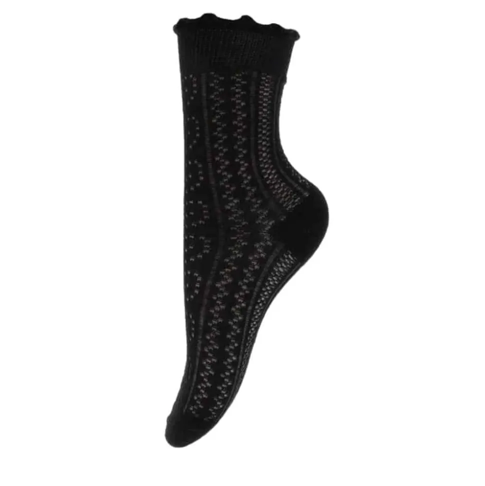 By Stær strømper til dame i sort. Disse elegante strømper med flæser er et stilfuldt valg til sommerens sneakers og sandaler. Det fine design og de feminine detaljer tilfører et eksklusivt touch til enhver garderobe. Fremstillet med 80% bomuld for optimal komfort og åndbarhed, mens 20% polyester sikrer holdbarhed. Strømpen kan maskinvaskes ved 30°C og er både praktisk og stilfuld til både hverdag og særlige anledninger.