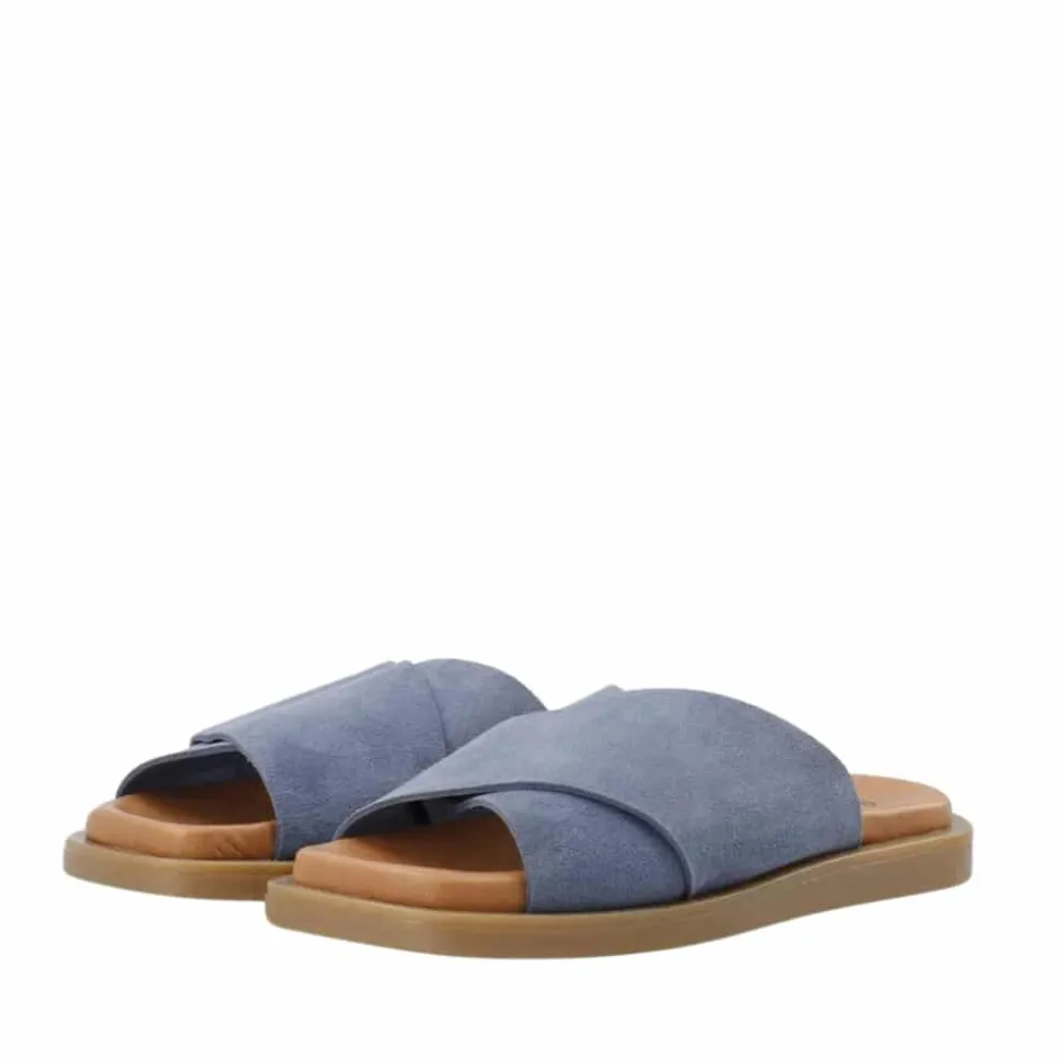 Cashott Casheidi sandal til dame i blå. Denne moderne slip-on sandal byder på et afslappet look med en behagelig pasform, perfekt til enhver lejlighed. Udstyret med en ydersål lavet af fleksibelt TR-gummi, sikrer Casheidi optimal bevægelse og komfort hele dagen. Det anvendte ruskind er nøje udvalgt fra LWG-certificerede garverier, hvilket garanterer både kvalitet og bæredygtighed. Hver eneste Casheidi-sandal er omhyggeligt håndlavet i Italien, hvilket vidner om den ægte håndværksmæssige ekspertise og kvalitet, der ligger bag hvert par. Gør dig klar til at tilføre dit look en smule italiensk elegance og komfort med Casheidi som oser af luksus og stil.