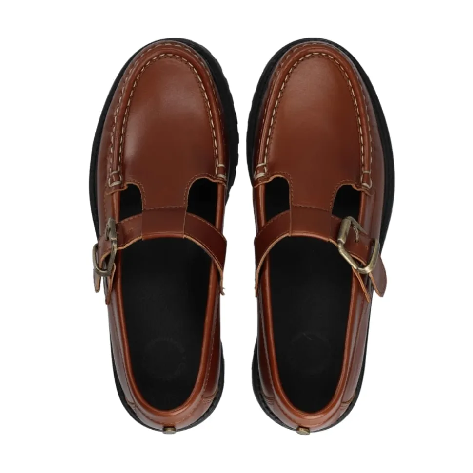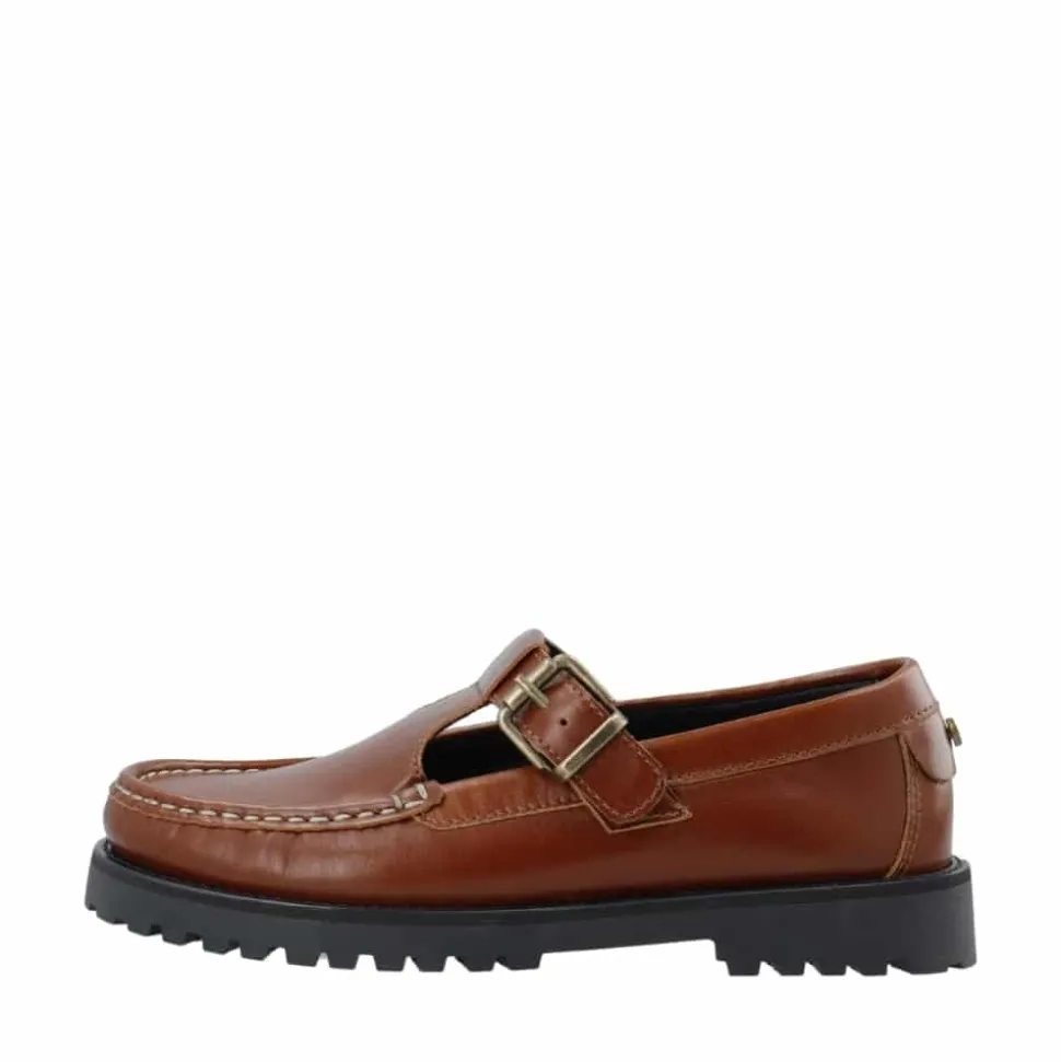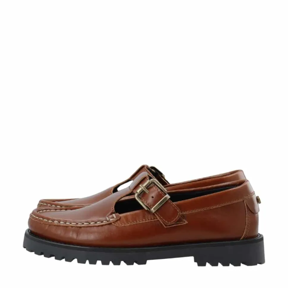 Cashott Caslena Mary Jane sko til dame i cognac. Disse moderne sko i cognacfarvet læder kombinerer klassisk stil med fine detaljer. Den praktiske spændelukning over forfoden gør det nemt at tage skoen på og tilpasse pasformen. Indvendigt finder du en blød sål, der sikrer god komfort hele dagen. Den solide gummisål på cirka 3 cm giver dig stabilitet og øget skridsikkerhed.