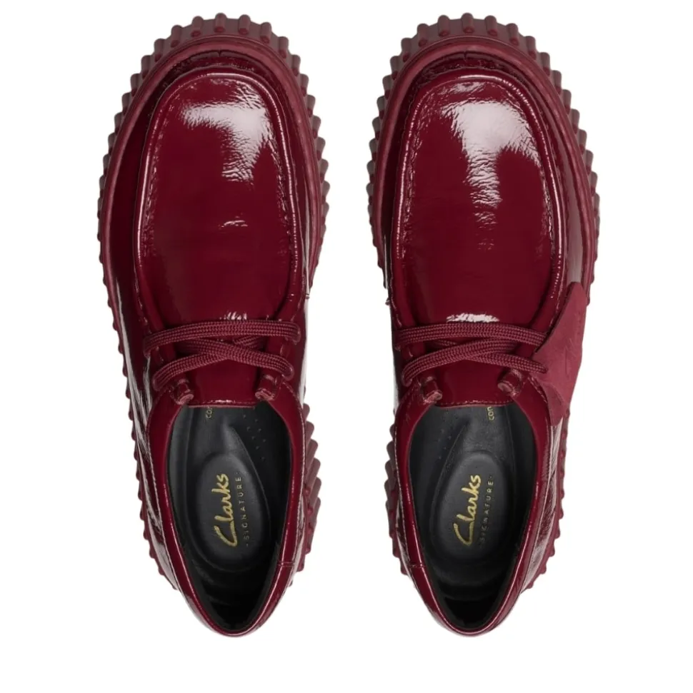Clarks Torhill Bee sko til dame i bordeaux lak. Stilfuld sko med en smuk bordeaux lakoverdel, der kombinerer moderne design med feminine detaljer. Overdelen i blødt skind giver en behagelig og fleksibel pasform, mens snørebåndene gør det muligt at justere pasformen. Indvendigt er den udstyret med en udtagelig skindsål med ekstra polstring, som støtter både hæl og forfod og sikrer høj komfort hele dagen. Den kraftige gummisål på 4 cm giver et trendy udtryk og stabilitet.