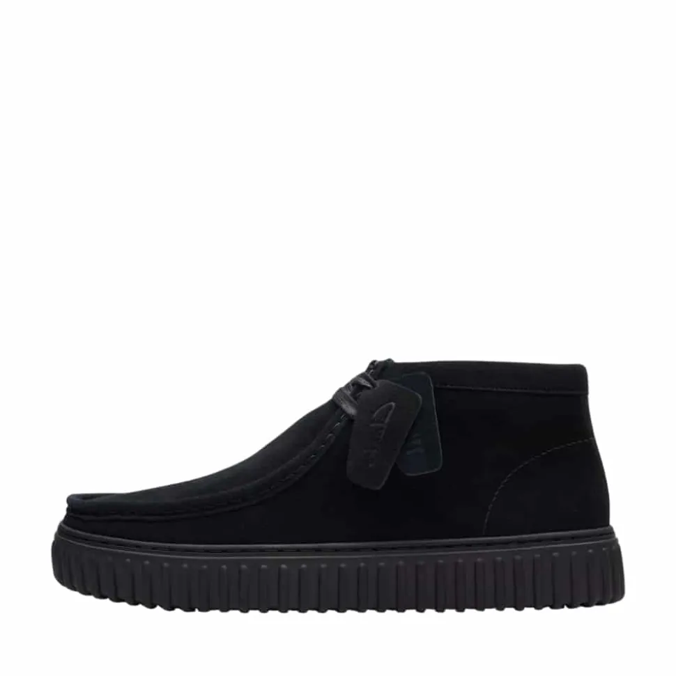 Clarks Torhill HI støvle til herre i sort. Moderne støvle i en klassisk sort farve med enkle detaljer der giver et stilfuld look. Støvlen har en overdel i ruskind og snørebånd foran der giver en justerbar pasform. Indvendigt bliver du mødt af en blød og udtagelig indersål, der giver optimal komfort. Den rillede plateausål giver øget støtte dagen lang og et ekstra strejf af stil.