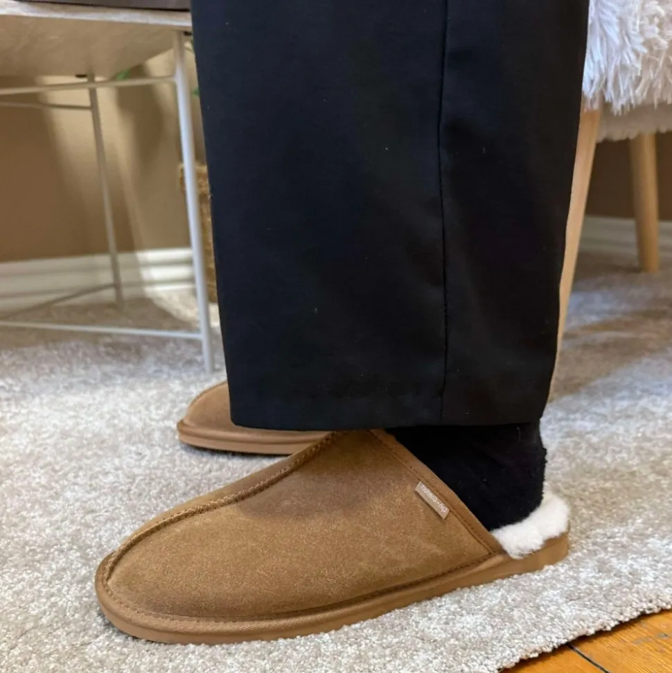 CPH-Comfort Slip Wool hjemmesko til herre i brun. Disse tøffel-hjemmesko er det perfekte valg til varme og komfort. Overdelen er lavet af ægte ruskind, som giver et elegant og holdbart udtryk. Hjemmeskoen har en blød og varm foring der holder fødderne varme hele dagen. Den bløde sål med stødabsorberende egenskaber gør dem ideelle til afslappende dage derhjemme.