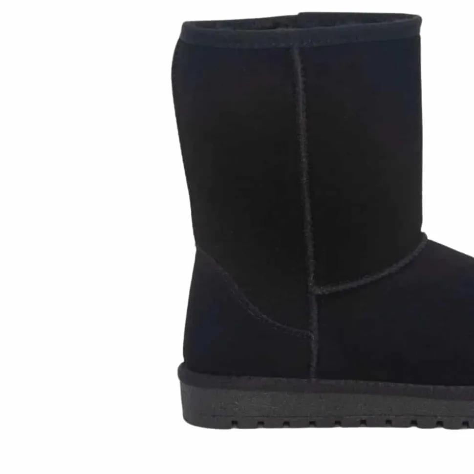 Duffy Avola Due bamsestøvle til dame i sort. Denne dejligt bløde bamsestøvle i en smuk mørk farve kombinerer komfort og stil på bedste vis. Med sin varme og bløde foring indvendigt holder støvlen dine fødder behageligt varme på kolde dage. Udvendigt er støvlen fremstillet af ruskind, og den robuste ydersål med skridsikkert mønster giver ekstra stabilitet. Derudover er støvlen let at tage af og på, hvilket gør den til det ideelle valg for både komfort og funktion.