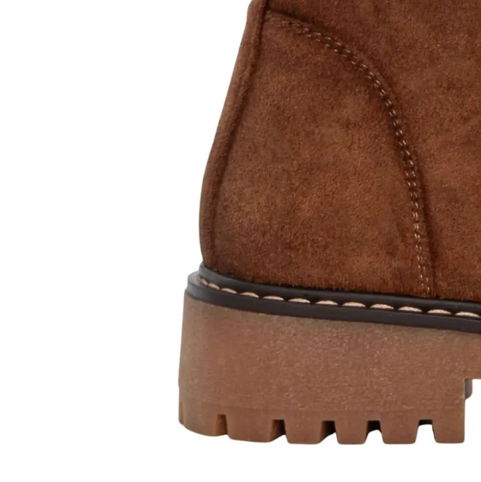 Duffy Ciavolo Uno støvle til dame i camel. Denne støvle kombinerer stil og funktionalitet på bedste vis. Støvlen har snørebånd og en funktionel lynlås, så du nemt kan tage støvlen af og på, samtidig med at pasformen kan justeres. Indvendigt finder du en blød sål og en varm foring, der sikrer god komfort gennem dagen. Den chunky ydersål med en blokhæl på 4 cm giver et stilfuldt og moderne touch