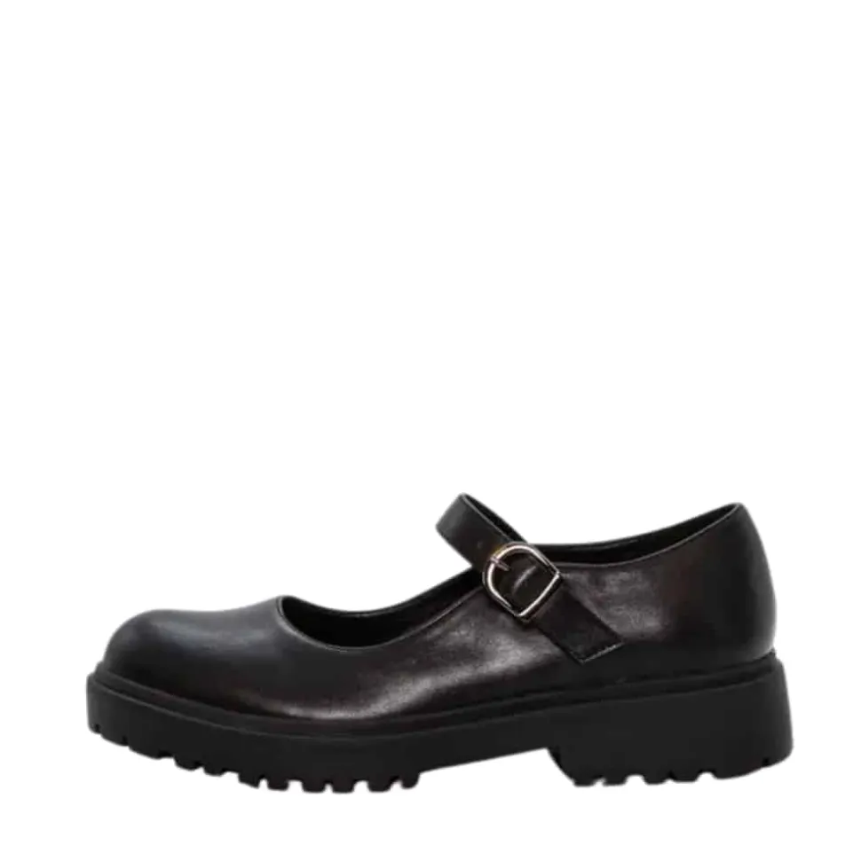 Duffy Lattarico Tre Mary Jane sko til dame i sort. Moderne sort sko med et flot og tidløst design, der passer til mange anledninger. Over vristen har skoen en justerbar rem med spænde, så pasformen nemt kan tilpasses foden. Indvendigt mødes du af en blød indersål, som giver behagelig komfort hele dagen. Ydersålen har et mønster, og den 4 cm høje blokhæl giver et elegant løft uden at gå på kompromis med komforten.