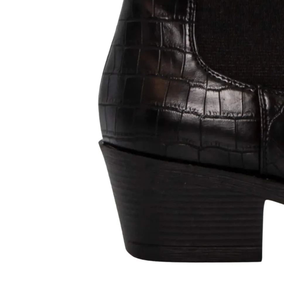 Duffy Messina Nove støvle til dame i sort. Flot og elegant chelseastøvle til dame i sort med en spids snude, der giver et moderne og feminint udtryk. Støvlen har elastik i begge sider, som gør støvlen nem at tage af og på, samtidig med at den tilpasser sig foden. Indvendigt finder du en blød sål, der giver behagelig komfort hele dagen. Den 5 cm høje blokhæl fuldender designet med et flot og elegant løft.