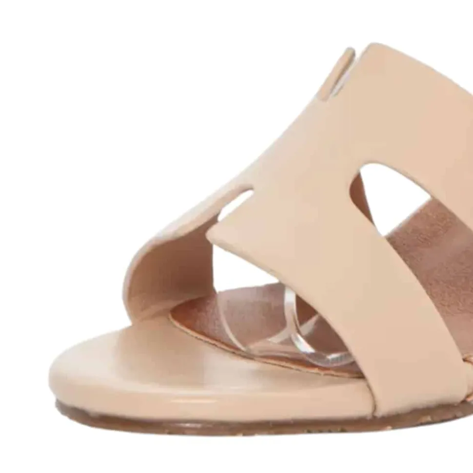 Duffy Rivello Diciotto sandal til dame i beige. Stilfuld sandal i beige med en mønstret rem over forfoden, der giver et pænt og moderne look. Sandalen har en justerbar rem med spænde, så den nemt kan tilpasses efter behov. Indvendigt finder du en blød sål, som sikrer behagelig komfort dagen igennem. Den solide blokhæl på ca. 5,5 cm giver et flot løft og god støtte dagen lang.