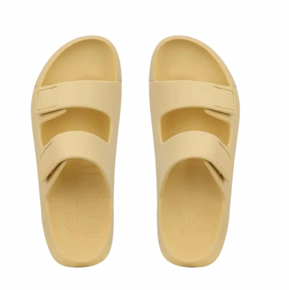 Ecco Cozmo E sandal til dame i gul. Denne lette og fleksible sandal i en flot gul farve tilføjer et stilfuldt look. Med to velcroremme, der giver mulighed for at justere pasformen, og et slip-in design, der gør den nem at tage af og på, er denne sandal både praktisk og komfortabel. Den bløde EVA skumsål og Ecco Fluidform™ teknologi giver optimal komfort hele dagen, og den rillet ydersål sikrer ekstra skridsikkerhed.