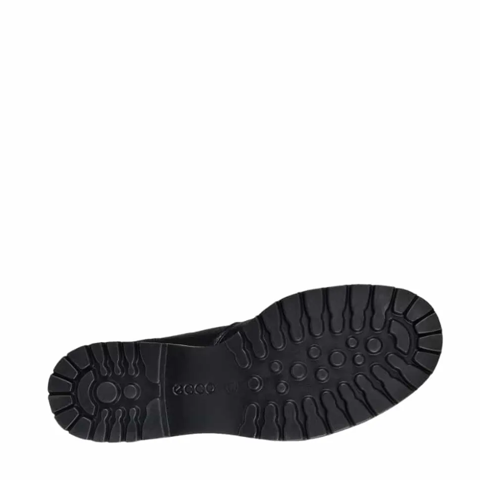 Ecco Elaina støvle til dame i sort. Elegant sort chelseastøvle i læder, der kombinerer tidløst design med moderne komfort. Støvlen har elastikker i siderne, som gør den nem at tage på og giver en fleksibel pasform. Indvendigt er den udstyret med en blød, udtagelig indersål for behagelig støtte, mens Ecco Fluidform™ teknologien giver naturlig bevægelse og blød komfort. Den solide ydersål med blokhæl på ca. 4 cm og mønster sikrer stabilitet og skridsikkerhed hele dagen.