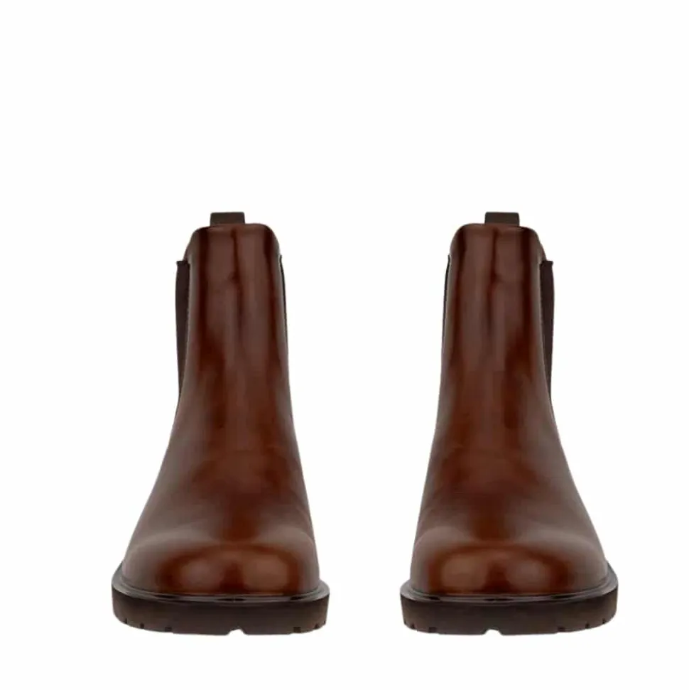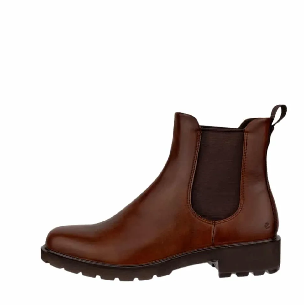 Ecco Metropole Vienna W støvle til dame i brun. Denne elegante støvle i brun skind er designet til dig, der ønsker både stil og komfort. Modellen har elastik i siderne, så den er nem at få af og på, og indvendigt finder du en blød Dual Fit indersål, der kan tilpasses efter behov. Takket være Ecco Fluidform™ får du en fleksibel støvle, der bevæger sig naturligt med foden, mens ydersålens mønster øger skridsikkerhed.