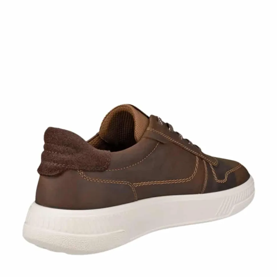 Ecco Move M sneakers til herre i brun. Flotte herresko i skind, perfekte til både hverdag og mere formelle anledninger. Skoen har snørebånd, som giver en justerbar pasform, så den sidder behageligt på foden. Indvendigt finder du en blød og udtagelig sål, der giver komfort hele dagen. Med Ecco Fluidform™ teknologi føles skoen let og fleksibel, mens den mønstrede ydersål øger både stødabsorbering og skridsikkerhed.