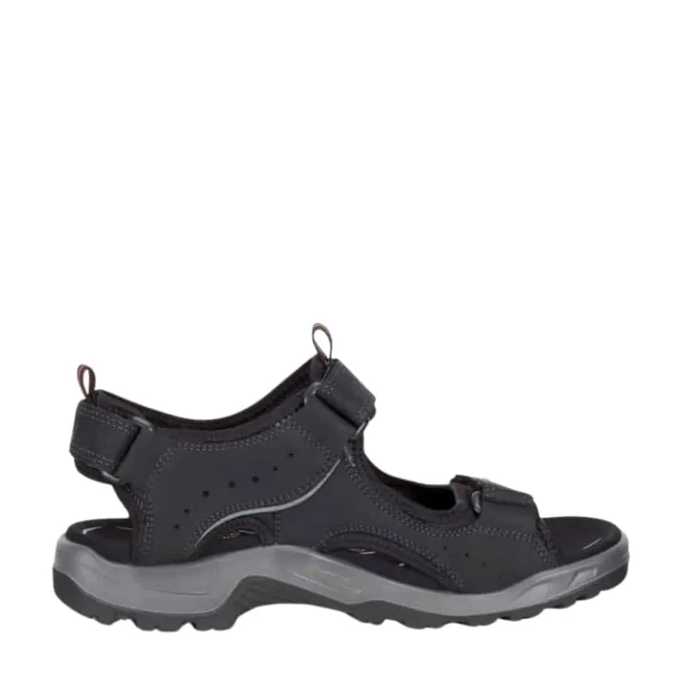 Ecco Offroad Andes II sandal til herre i sort. Denne lette og komfortable sandal i sort nubucklæder er skabt til dig, der ønsker både praktisk funktion og behagelig pasform. Med tre velcroremme kan du nemt justere sandalen efter dine behov, samtidig med at det gør den hurtig at tage af og på. Indvendigt finder du en formstøbt EVA-sål, som giver støtte og effektiv stødabsorbering. Ydersålen er udstyret med ECCO FLUIDFORM™ teknologi og et mønstret greb, der sikrer både skridsikkerhed og stabilitet i dine skridt.