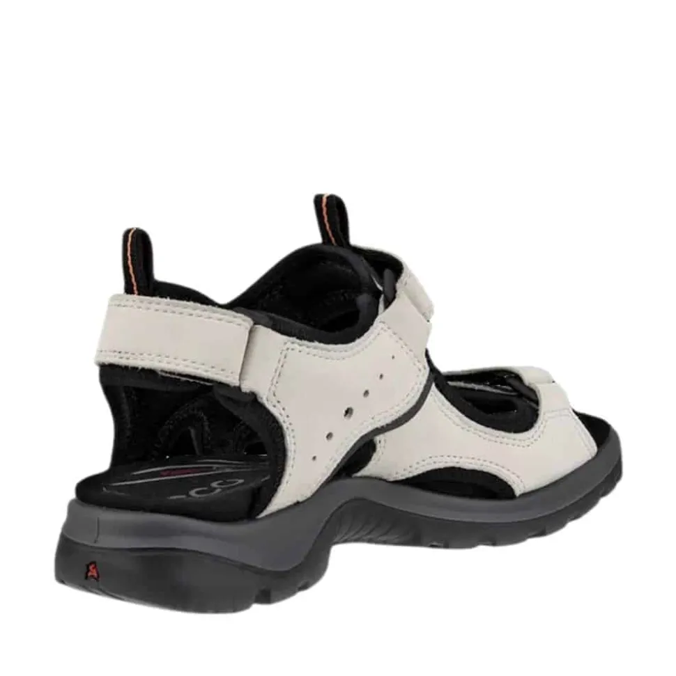 Ecco Offroad sandal til dame i hvid. Disse sandaler kombinerer lethed og støtte for at sikre, at du har komfort hele dagen. Den bløde nubuckoverdel og de tre justerbare velcroremme giver en behagelig og personlig pasform. Indvendigt bliver du mødt af en blød EVA-fodseng der er formstøbt og giver optimal stødabsorbering og stabilitet. Den slidstærke og skridfaste gummiydersål sørger for fremragende greb i både byens travle gader og på varieret terræn.
