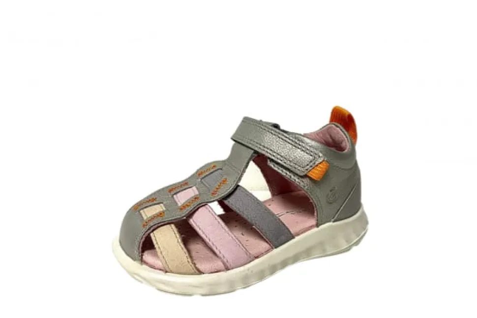 725121-51929 Ecco Sandal i Kombination til Børn. Den perfekte sandal til den mindste. Modellen er i en flot farve kombination med både sølv, orange, lyserød, beige og grå farver. Modellen er meget let og utroligt stød absorberende.