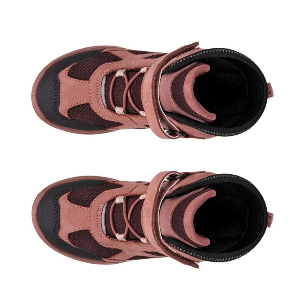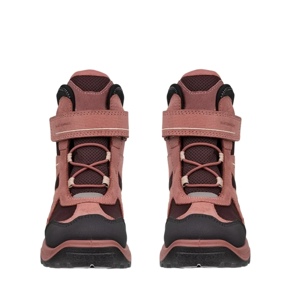 Ecco Snow Mountain støvle til børn i lyserød. Denne vinterstøvle i skind er et perfekt valg til hverdagen. Støvlen har en praktisk velcrolukning og elastik, som tilpasser sig foden og gør den nem at tage af og på. Indvendigt finder du en blød udtagelig sål og en varm foring, der giver høj komfort. Med Ecco Fluidform™ følger støvlen fodens naturlige bevægelser, mens Waterproof-teknologien gør støvlen 100% vandtæt.