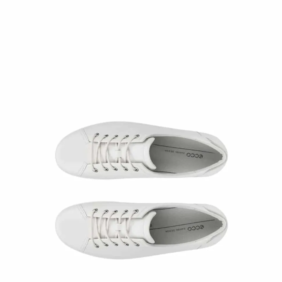 Ecco Soft 2.0 sneakers til dame i hvid. Denne sneakers er en klassisk damesko, der er skabt til komfort og stil. Fremstillet i ægte skind. Skoen har en blød inderside, der giver åndbarhed, og en udtagelig mikrofiber-indlægssål med ECFS™ teknologi, som øger komforten ved hvert skridt. En ideel sko til både gåture og hverdagsbrug.