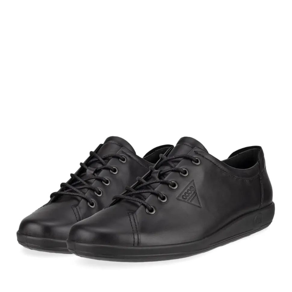 Ecco Soft 2.0 Tie sko til dame i sort. ECCO SOFT 2.0 er en snøresko til gåture lavet af førsteklasses fuldkornslæder, der hylder ECCOs skandinaviske arv. Den har en retro silhuet og et opdateret look, der passer til både chikke og afslappede outfits. Overdelen er fremstillet af rige lædermaterialer fra vores egne garverier uden brug af krom. Den bløde tekstilforing sikrer åndbar komfort, mens den aftagelige mikrofiber-indlægssål med ECFS™ teknologi tilføjer ekstra komfort. ECCO SOFT 2.0 er den perfekte blanding af stil og komfort med en skandinavisk retro følelse.