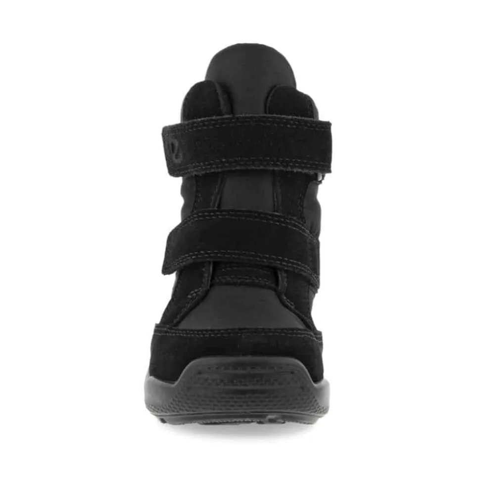 ECCO Urban Mini støvle til børn i sort. Oplev den perfekte vinterstøvle til leg i sneen og det kolde eller våde vejr! Denne lette og fleksible støvle kombinerer smukke skinddetaljer med maksimal funktionalitet. Med 100% vandtæt GoreTEX-membran holdes fødderne tørre uanset vejret, mens det varme, dyrevenlige “FAUX FUR”-for sørger for, at dit barn har det lunt og godt hele vinteren. To praktiske velcrolukninger gør det supernemt for børn selv at tage støvlerne af og på – hurtigt og uden besvær. Ideel til sjove vinterdage, hvor komfort, varme og stil går hånd i hånd!