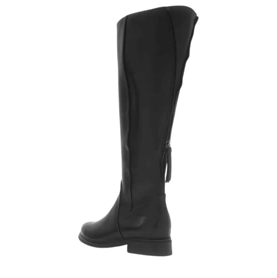 Gabor lang støvle til dame i sort. Klassisk og elegant sort støvle med en skindoverdel, der giver et tidløst look. Bagpå har modellen en funktionel lynlås, som tilfører et flot touch, mens skaftvidde L giver en mere rummelig pasform. På indersiden er støvlen udstyret med endnu en lynlås, der gør det nemt at tage den af og på. Indvendigt finder du en blød udtagelig sål, der giver god komfort, mens den mønstrede ydersål øger skridsikkerheden.