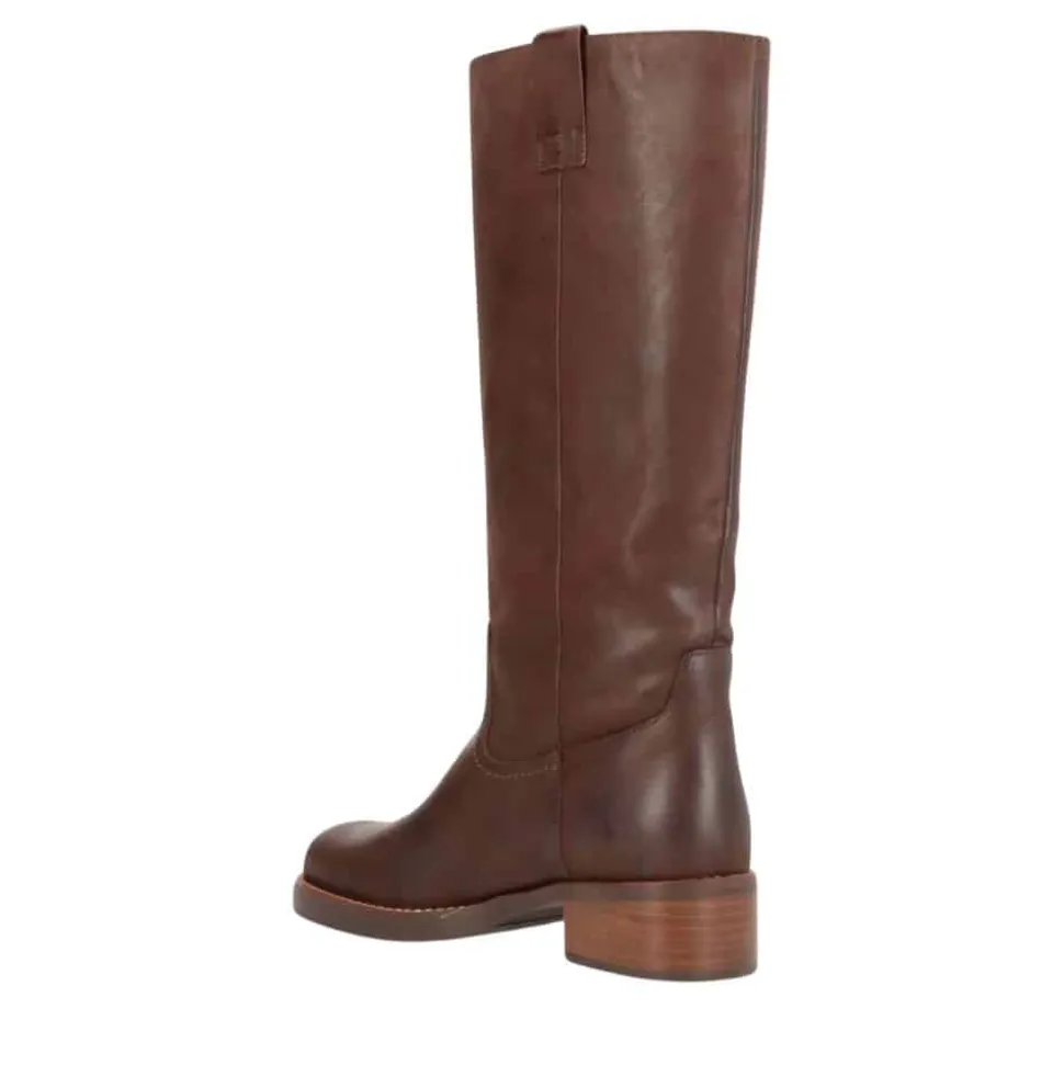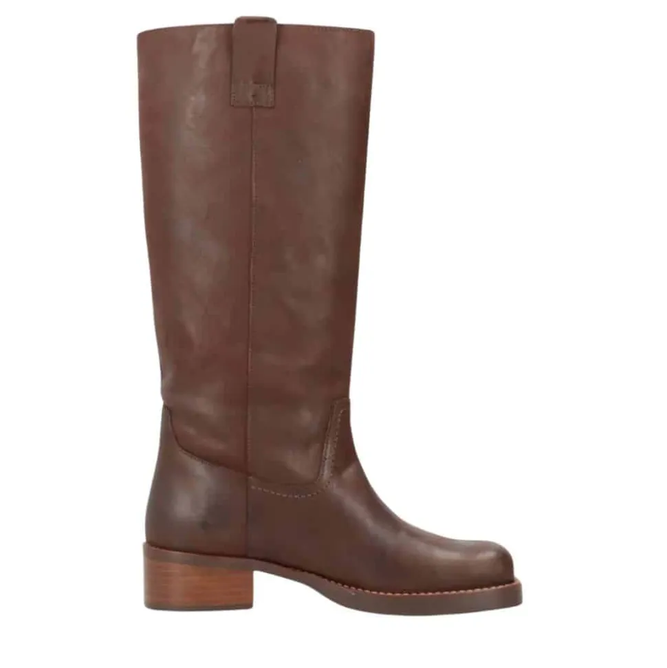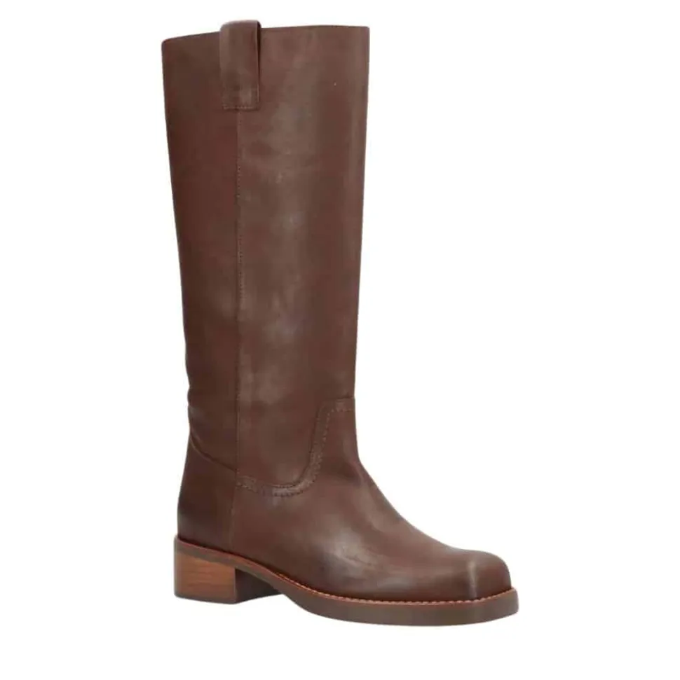 Phenumb Copenhagen Cameron lang støvle til dame i mørkebrun. Denne langskaftede støvle, fremstillet i 100% læder, er det perfekte valg for dig, der vil omfavne trenden med lange støvler. Dens moderne design og enkle detaljer skaber et tidløst udtryk, mens læderet kun bliver smukkere med tiden. Den solide hæl på cirka 5 cm giver et behageligt løft, så du både kan føle dig elegant uden at gå på kompromis med komforten. Med en firkantet snude, der tilfører ekstra karakter, er denne støvle nem at kombinere med ethvert outfit.