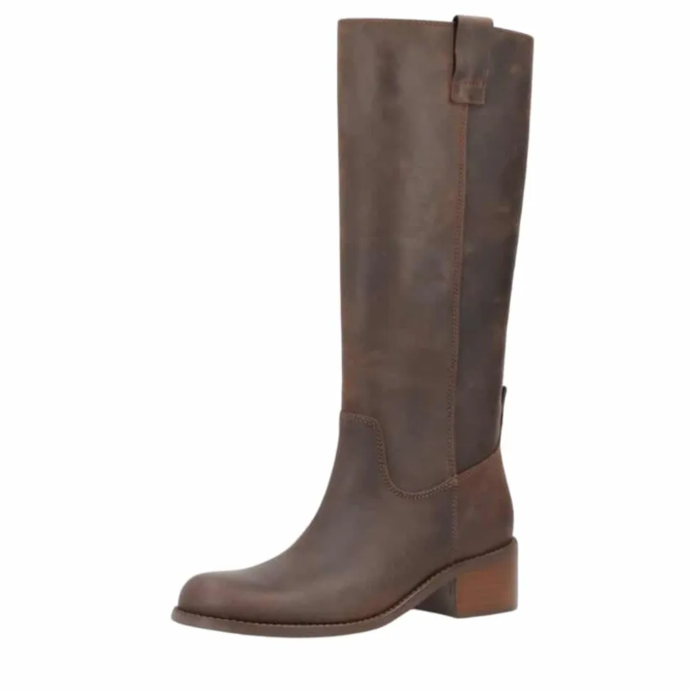 Phenumb Copenhagen Martina lang støvle til dame i mørkebrun. Denne støvle er et oplagt valg til dig, der ønsker at følge trenden med lange og moderne støvler. Støvlen er fremstillet i 100% blødt kernelæder, som bliver endnu smukkere med tiden og giver et eksklusivt udtryk. Indvendigt finder du glatskind og en blød indersål, der sikrer komfort hele dagen. Den chunky hæl på 5 cm giver et behageligt løft, så du får både stil og velvære. Med sin nemme påtagning og moderne look er støvlen perfekt til en stilbevidst garderobe.