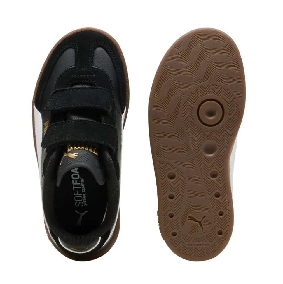 Puma Club II Era V PS sneakers til børn i sort. Smart sneakers i en moderne sort farve med fede Puma-detaljer på siden i hvid, der giver et stilfuldt look. Skoen har to velcroremme der giver en justerbar pasform og gør det let at komme i og af skoen. Indvendigt er der en blød og udtagelig indersål for god komfort, mens gummisålen giver øget skridsikkerhed.
