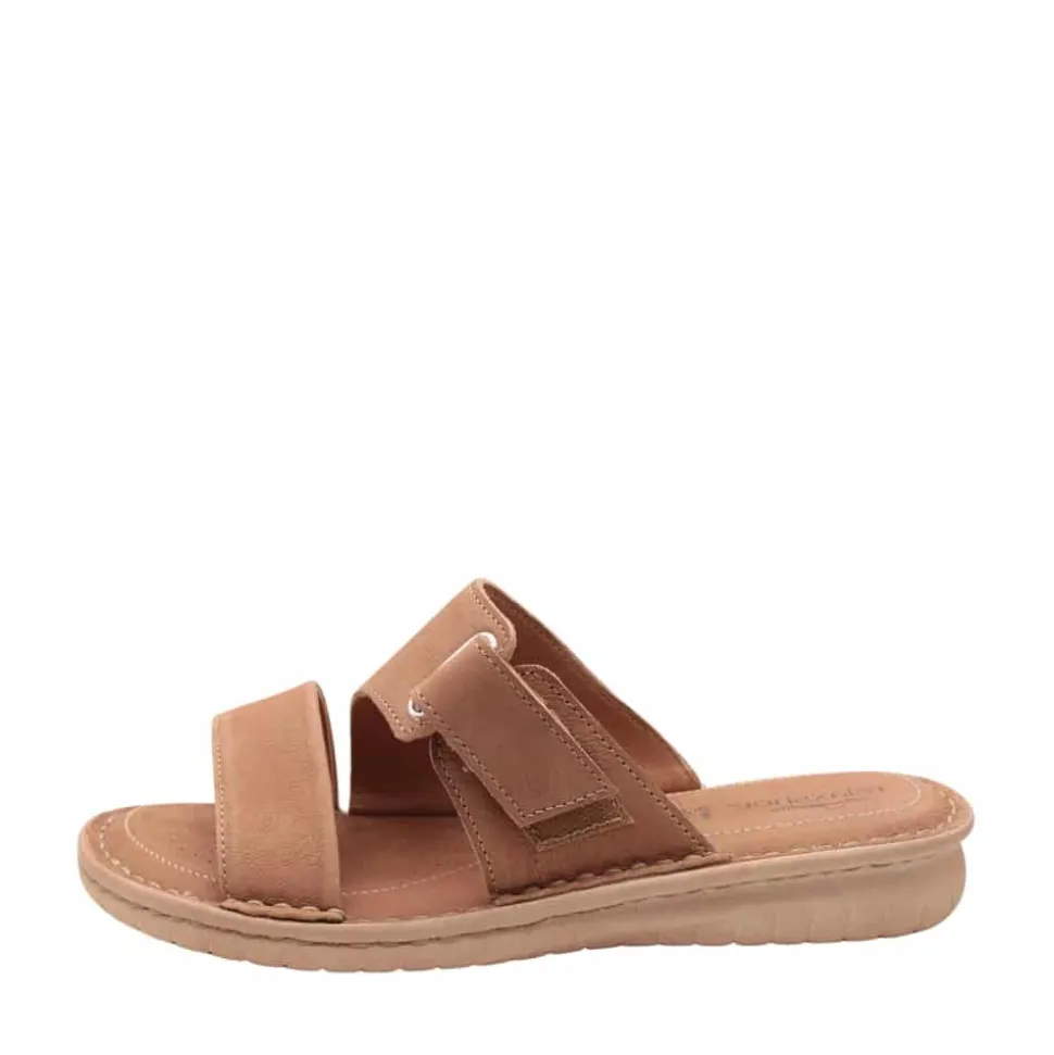 Relaxshoe sandal til dame i beige. Elegant beige sandal med et klassisk design, der passer perfekt til både hverdag og særlige anledninger. Sandalen er fremstillet i 100% skind og har en rem over forfoden samt en justerbar velcrorem, der sikrer en behagelig og fleksibel pasform. Den bløde indersål giver ekstra komfort, mens slip-in funktionen gør det nemt at tage sandalen af og på. Med en stilfuld 3 cm hæl og en skridsikker sål får du både elegance og stabilitet hele dagen.