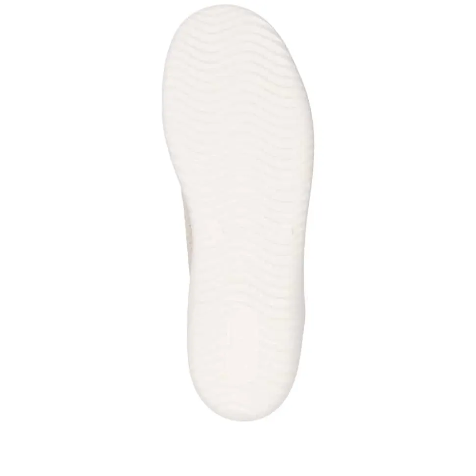 Remonte sneakers til dame i beige. Denne lette og fleksible sneakers i beige er designet med elegante gyldne og glitrende detaljer, der giver et stilfuldt touch. Snørebåndene foran sikrer en justerbar pasform og gør skoen nem at tage af og på. Overdelen er fremstillet i blødt og åndbart materiale, som giver en behagelig fornemmelse hele dagen. Indvendigt finder du en udtagelig Remonte Soft-indersål, der sikrer optimal komfort. Den rummelige pasform (G) giver ekstra plads til fødderne, mens den lette Lite n Soft-ydersål sørger for fleksibilitet og effektiv stødabsorbering.