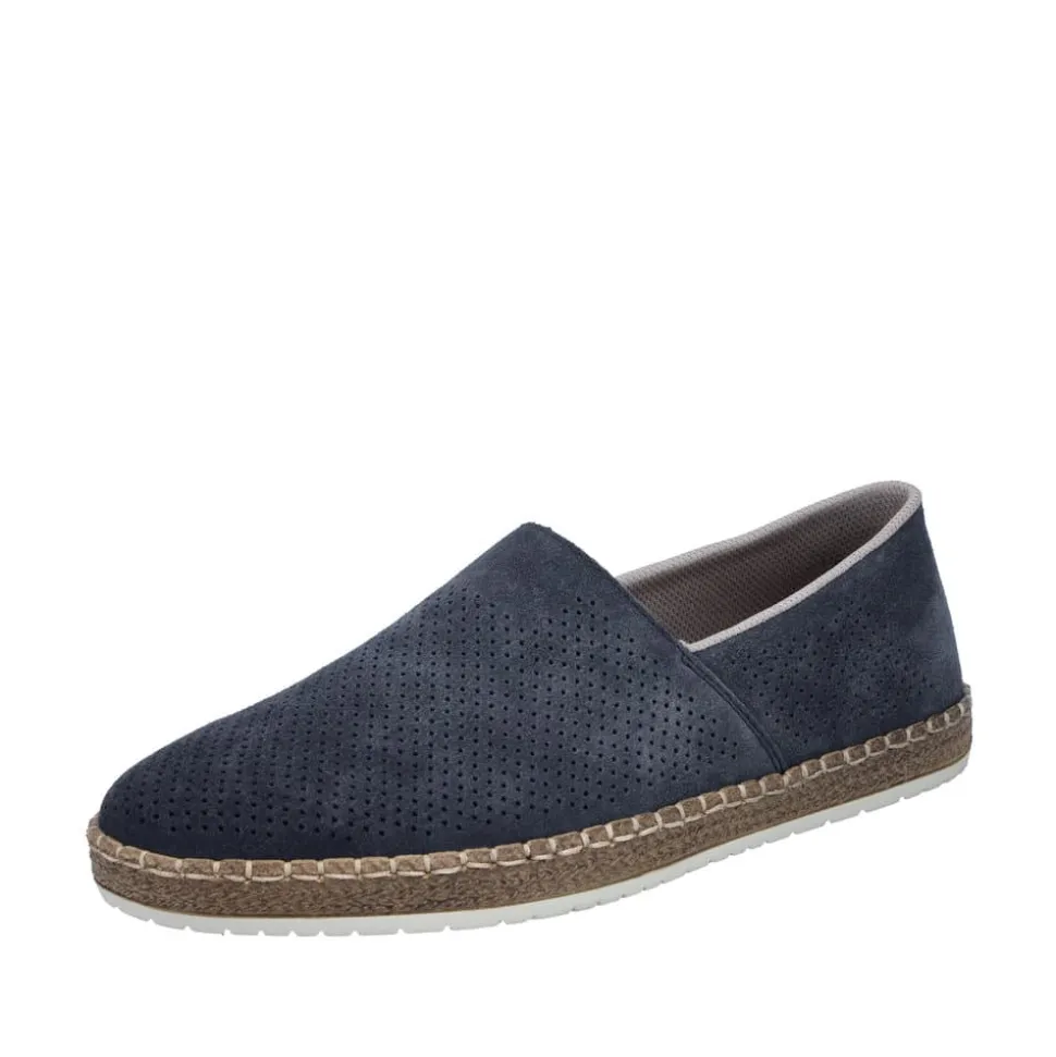Rieker hyttesko til herre i blå. Oplev enestående komfort med disse Rieker-hytte til herrer i en elegant grå nuance. Fremstillet i slidstærkt ruskind og med en fleksibel konstruktion, der tilpasser sig dine fødder. Åbningen gør det nemt at tage dem på, mens den stødabsorberende PU-sål og den bløde læder-dæksål sørger for komfort dagen lang. Med komfortvidde G ½ får dine fødder ekstra bevægelsesfrihed med ekstra plads i forfoden.