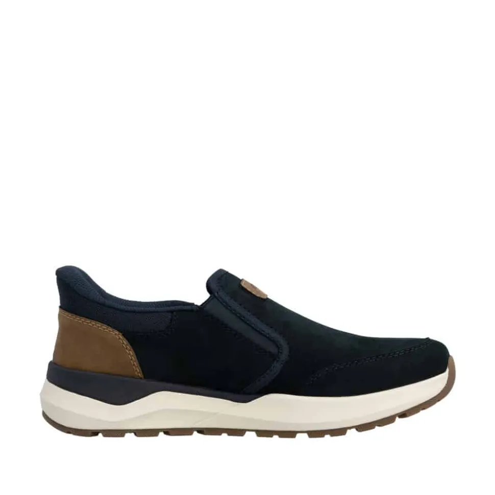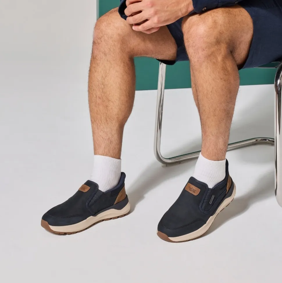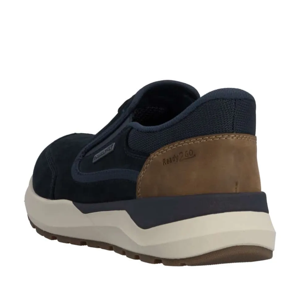 Rieker Ready 2 Go hyttesko til herre i blå. Disse smarte hyttesko med en flot skindoverdel og funktionelle detaljer gør skoen praktisk til hverdagen. Skoen er udstyret med Ready 2 Go og en fast hælkappe, så du nemt kan tage skoen på uden brug af hænder. Med Rieker-Tex er skoen kraftigt vandafvisende og velegnet til skiftende vejr. Indvendigt finder du en blød og udtagelig sål samt ekstra bredde (H), som giver god komfort og rummelighed til foden. Ydersålen har mønster, der giver øget stødabsorbering og skridsikkerhed.