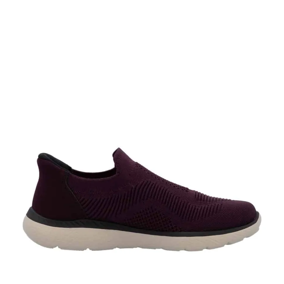 Rieker Ready 2 Go sko til dame i bordeaux. Denne sko er skabt til dig, der ønsker en praktisk løsning med høj komfort. Med Ready 2 Go teknologien og en fast hælkappe kan du tage skoen på uden brug af hænder. Rieker Antistress gør modellen let og fleksibel, så den føles behagelig, selv efter mange timers brug. Indvendigt finder du en memosoft-sål, som former sig efter foden og giver støtte hele dagen. Ydersålen er udstyret med et mønster, der både øger stødabsorbering og skridsikkerhed
