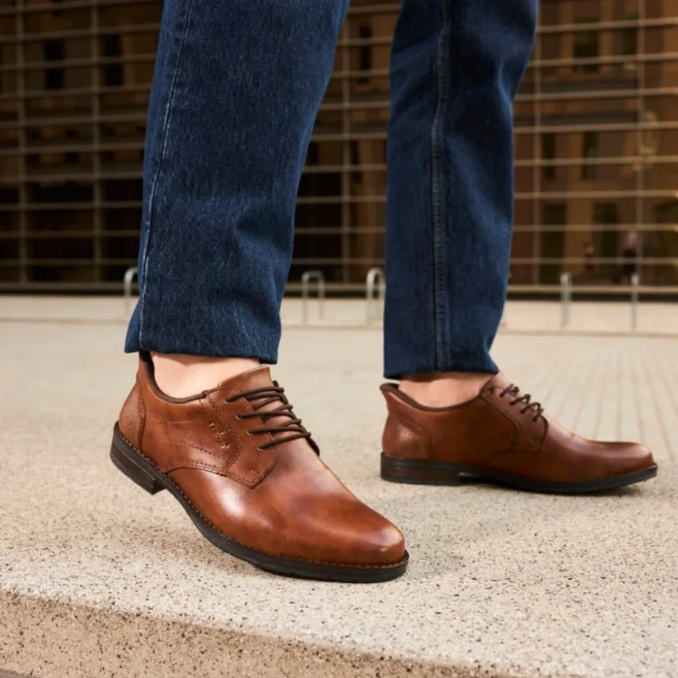 Rieker Ready 2 Go sko til herre i brun. Bare træd i dem og kom afsted med stil og komfort! Med den praktiske Ready2GO-funktion og en fast hælkappe kan du nemt glide i skoene uden besvær. Disse brune Rieker slip-ons til herrer i glat læder er den perfekte kombination af elegance og funktionalitet. Den robuste og fleksible konstruktion gør dem til en pålidelig ledsager i hverdagen, mens elastikken sikrer en nem og behagelig pasform. De dekorative syninger giver skoen et moderne og stilrent look. Med en skridsikker TR-sål får du stabilitet ved hvert skridt, og den ekstra bløde læderindersål sørger for maksimal komfort hele dagen. Ideelle til både hverdag og afslappede anledninger – det ultimative valg for den moderne mand!