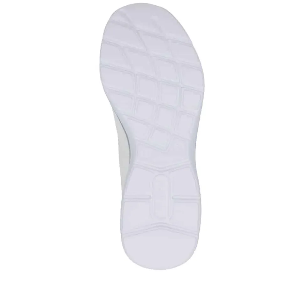 Rieker Ready 2 Go sneakers til dame i hvid. Stilfuld sneakers i hvid med fine detaljer og elastik foran, der tilpasser sig foden og giver en god pasform. Med Hands Free Ready 2 Go teknologi og fast hælkappe kan du nemt komme i skoen uden at bruge hænder. Den bløde Memosoft sål indvendigt sikrer maksimal komfort, mens den stødabsorberende ydersål med mønster giver øget stabilitet og skridsikkerhed i hvert skridt.