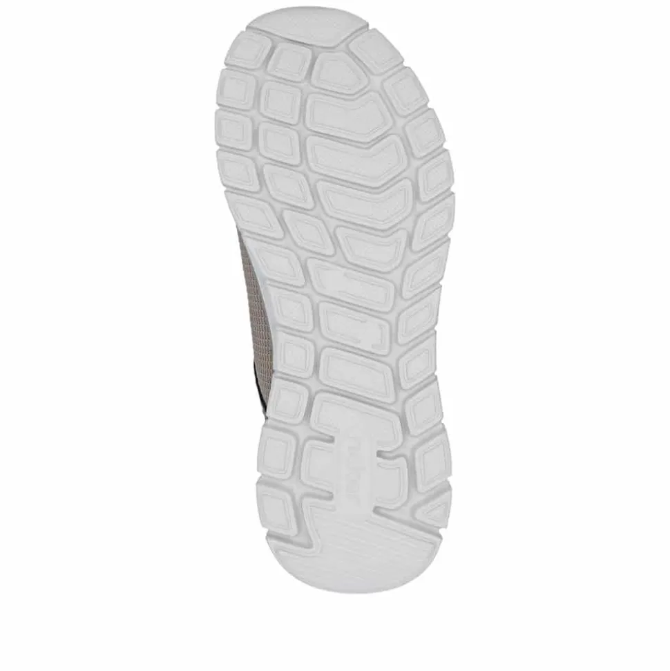 Rieker Ready 2 Go sneakers til herre i beige. Denne sneakers er udstyret med Hands Free Ready 2 Go teknologi, så du nemt kan tage skoen på uden hænder, takket være den faste hælkappe. Elastikken foran giver en behagelig pasform, og indvendigt mødes du af en blød indersål, der sikrer god komfort hele dagen. Med Rieker-Lite får du en utrolig let sko, og Rieker Antistress giver fleksibilitet og stødabsorbering, så hvert skridt føles behageligt.
