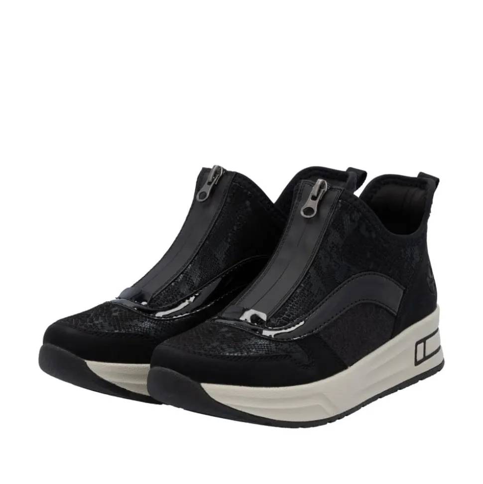 Rieker Ready 2 Go støvle til dame i sort. Denne støvle kombinerer stil og komfort på bedste vis. Med Ready 2 Go-teknologi og en fast hælkappe kan du tage støvlen på uden at brug af hænder. Foran finder du en funktionel lynlås, som både er praktisk og tilføjer en smart detalje. Indvendigt bliver du mødt af en blød udtagelig sål og ekstra bredde (H), der sikrer en rummelig pasform og høj komfort hele dagen. Den mønstrede ydersål giver øget stødabsorbering og skridsikkerhed.