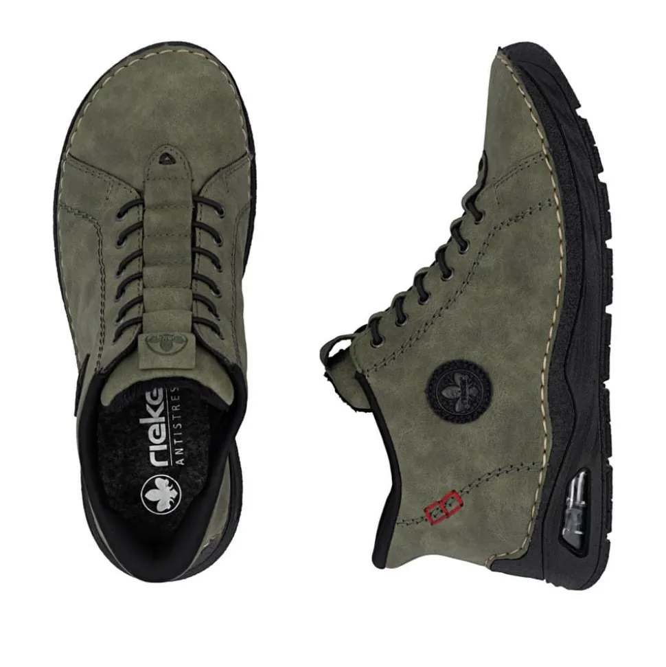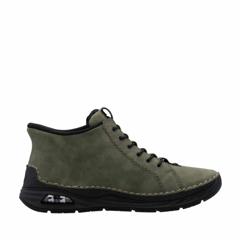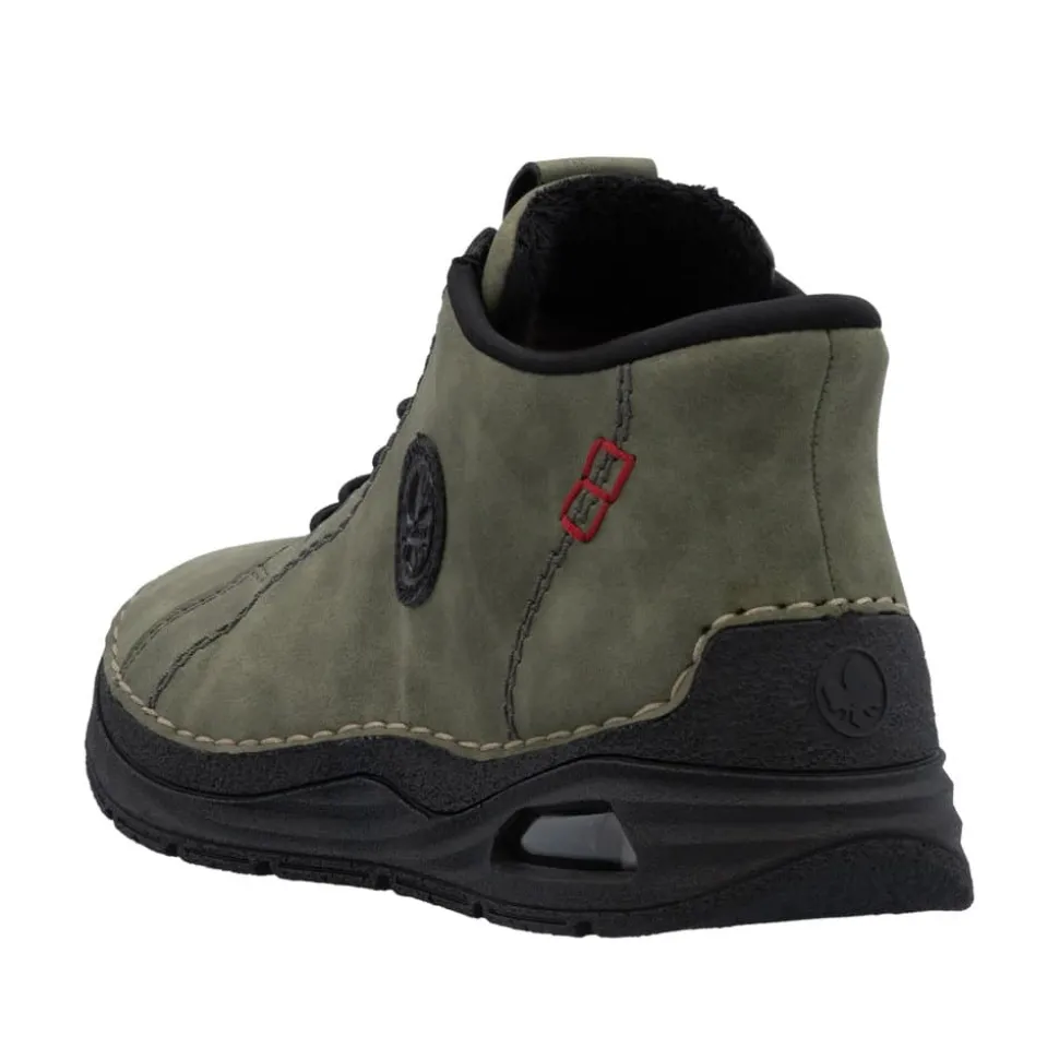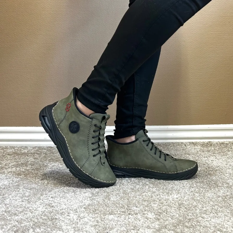 Rieker Ready 2 Go støvle til dame i army grøn. Smart og funktionel støvle i army grøn, der er ideel til hverdagen. Den er designet med Ready 2 Go-teknologi og en fast hælkappe, så du nemt og hurtigt kan tage den på uden hænder. Den elastiske front tilpasser sig foden og giver ekstra komfort. Indvendigt er støvlen let foret og har en udtagelig sål, mens den mønstrede ydersål sørger for øget skridsikkerhed og stødabsorbering.
