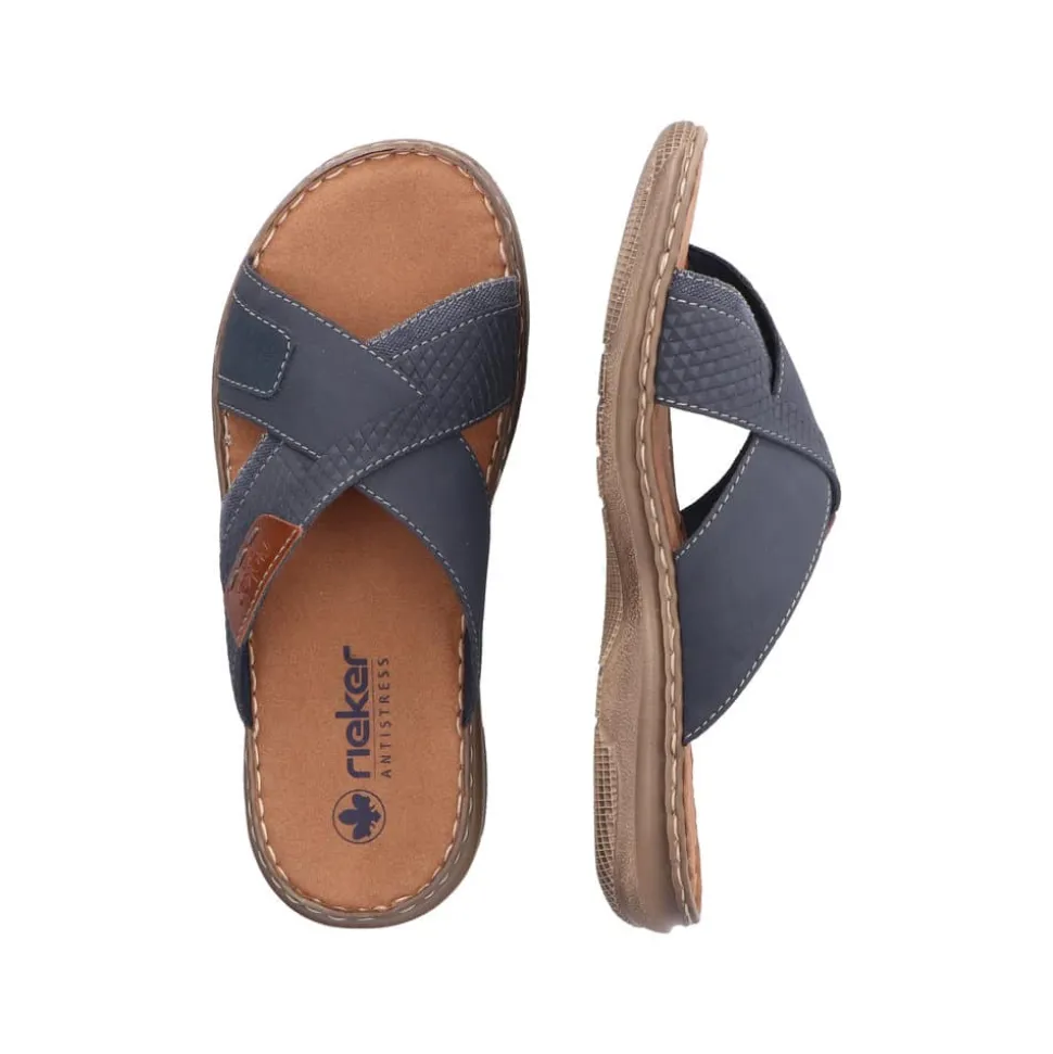 Rieker sandal til herre i blå. Få mest ud af sommeren! Disse Rieker herresandaler er det ultimative valg med deres moderne design og enestående komfort. Med sandaler uden lukning kan de tages på med lethed på ingen tid. Den åbne design og den lette, fleksible sål giver konstant velvære, mens den ekstra bløde indersål tilføjer en luksuriøs følelse. Desuden er sandalen forsynet med et let, åndbart for, der effektivt absorberer fugt og holder fødderne friske hele dagen. Så tag disse sandaler på og kom ud og nyd sommeren!
