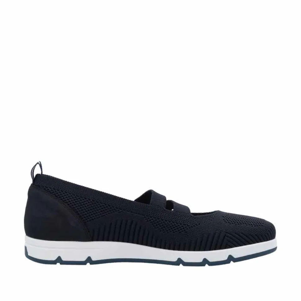 Rieker sko til dame i blå. Få den ultimative komfort med disse Rieker sko i blå til kvinder. Den bløde og fleksible TR-gummisål kombineret med elastikken over vristen sikrer en perfekt pasform, mens de udtagelige Rieker soft såler giver ekstra støtte. En let og åndbar sko, der er utrolig nem at tage på og af – ideel til både hverdag og afslapning.