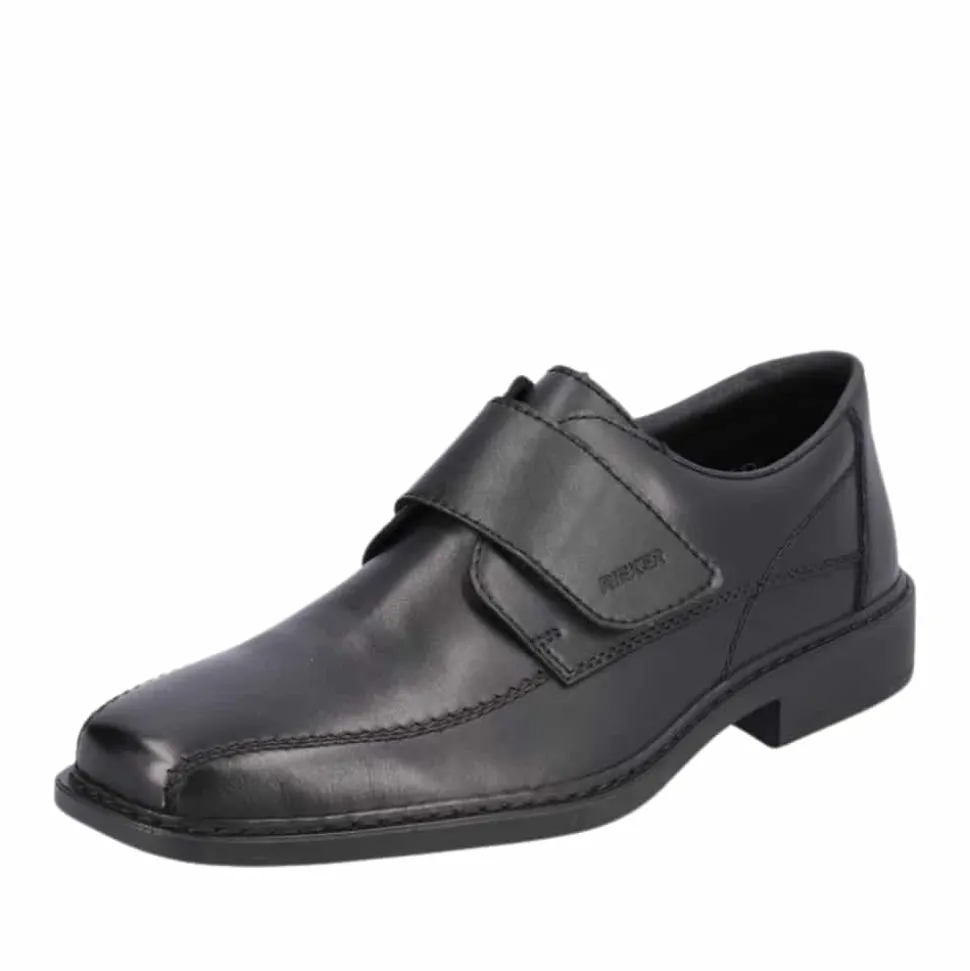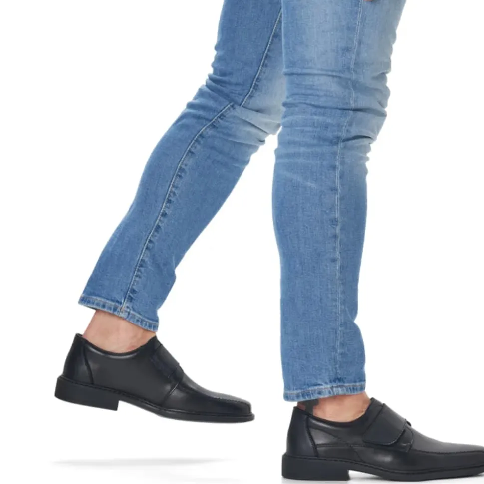 Rieker sko til herre i sort. Disse natte sorte Rieker slip-on sko til mænd lavet af glat læder vil du slet ikke tage af igen. Takket være en praktisk velcrolukning er modellen lynhurtig at tage på. Den støddæmpende og lette sål giver vedvarende velvære – selv på lange dage. Derudover sørger den ekstra bløde indersål for ekstra komfort. Skoen er designet med ekstra bredde i størrelse H. Fodtøjet er foret med åbencellet materiale, der er meget åndbart og effektivt absorberer fugt, hvilket gør det perfekt til varmere temperaturer. Bare glid ned i dem og nyd – med Rieker!
