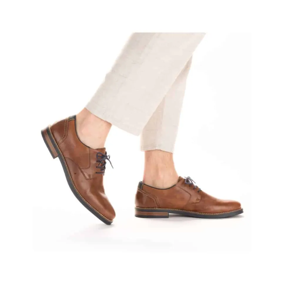 Rieker herresko i brun. Eksklusive herresko i en elegant brun nuance. Skoens design præsenterer en fortryllende læderoverflade og tilbyder tilpasning med justerbare snørebånd. Den lette og smidige sko kombinerer stil med komfort og sikrer en behagelig pasform hele dagen. Den indbyggede stødabsorberende sål tilføjer en ekstra dimension af velvære til dine fødder.