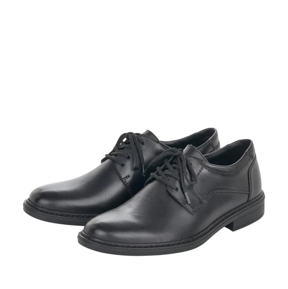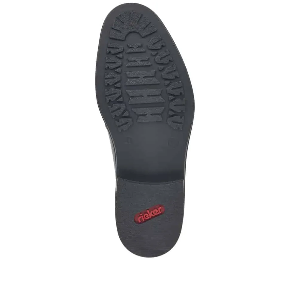 Rieker sko i sort til herre. Klassisk sko med en blød skindoverdel. Skoen er udstyret med snørebånd foran så du nemt kan justerer den efter din fod. Modellen har en lille hæl som giver den et sofistikeret look. Skoen har ekstra vidde og er super let, hvilket er med til at øge komforten. Sidst men ikke mindst har skoen en lækker stødabsorberende sål samt en sål med gode mønstrer under, der bidrager til en øget skridsikkerhed.