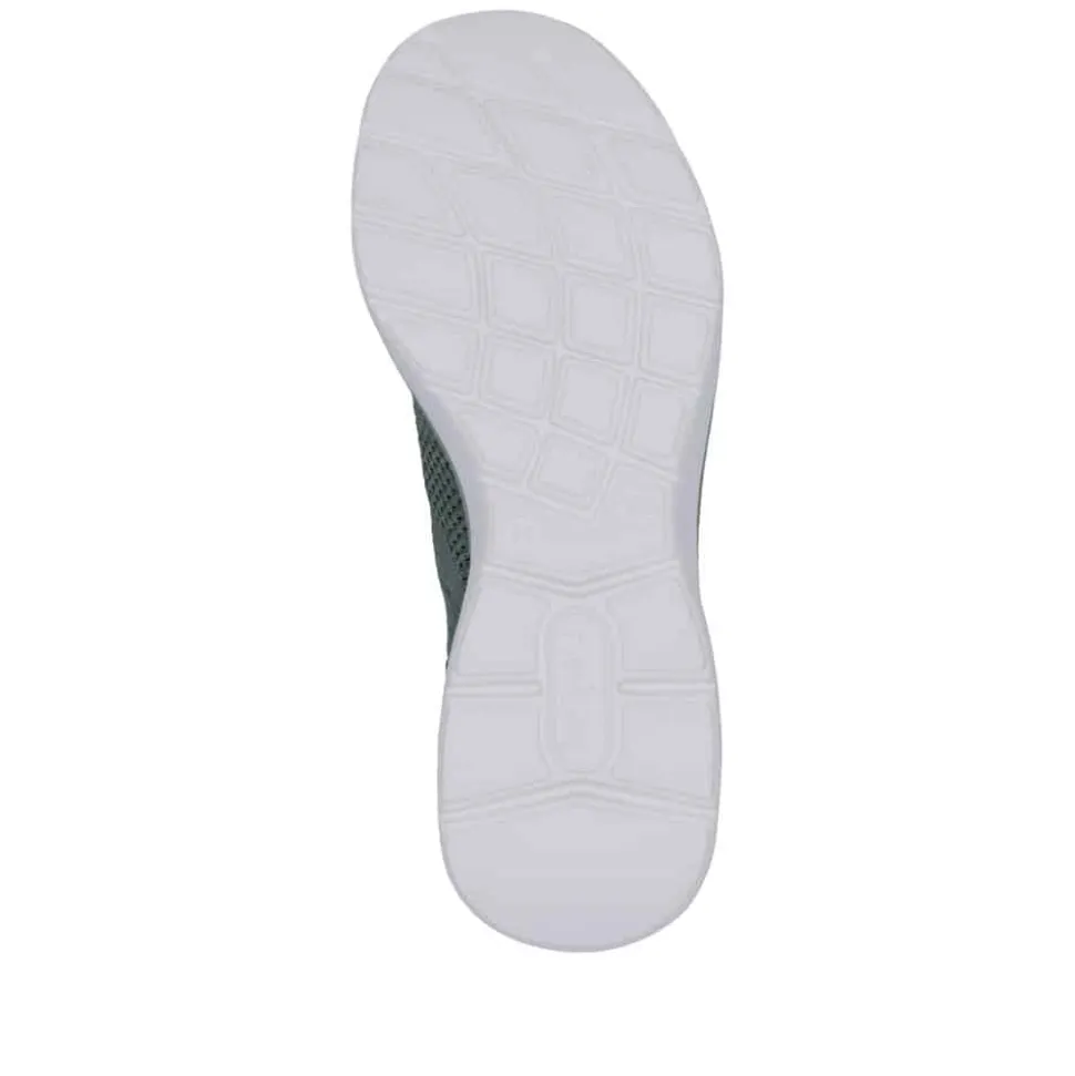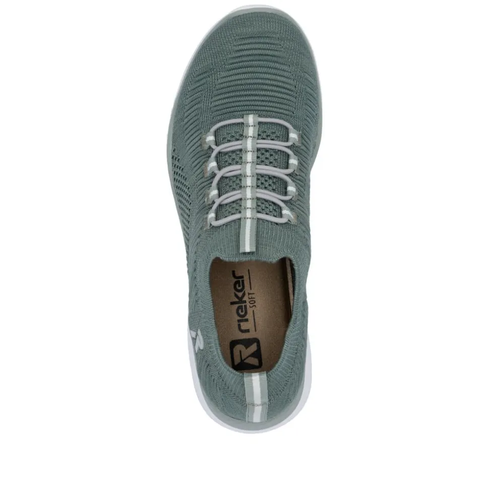 Rieker sneakers i grøn til dame. Disse grønne Rieker sneakers til damer er en perfekt kombination af stil og komfort. Fremstillet i højkvalitets tekstil, har de et moderne og let design, der passer perfekt til hverdagen. Den elastiske skaftekant og gummibånd gør dem nemme at tage af og på, mens den fleksible og ultralette EVA-sål sikrer maksimal bevægelighed og komfort ved hvert skridt. Den ekstra bløde Memosoft-indersål former sig individuelt efter foden og giver en personlig og behagelig pasform. Med Rieker Antistress får dine fødder den nødvendige plads til en afslappet og ubesværet oplevelse. Ideelle til både afslappede og aktive dage, hvor komfort og stil går hånd i hånd.