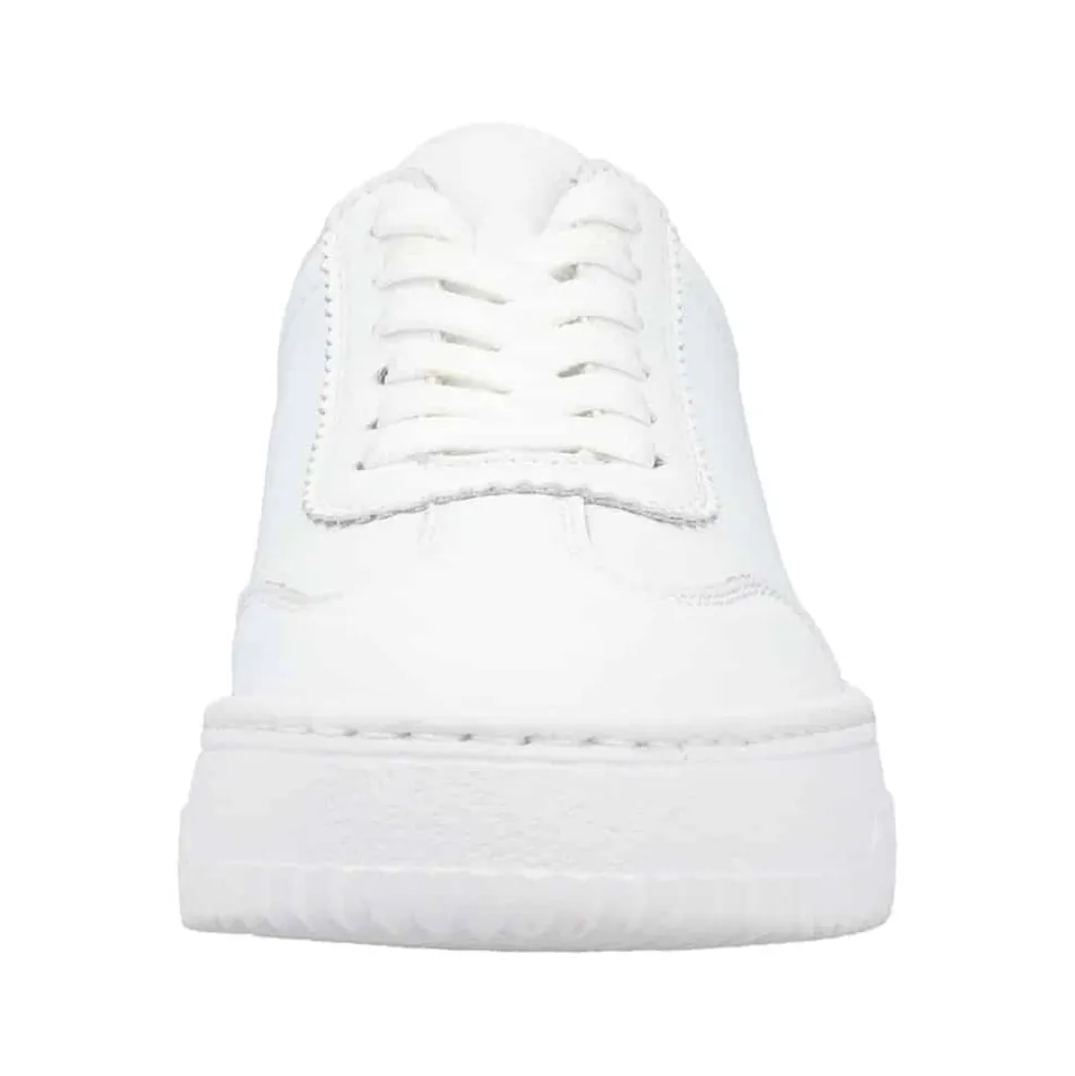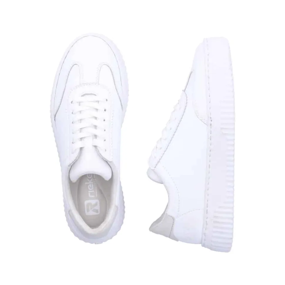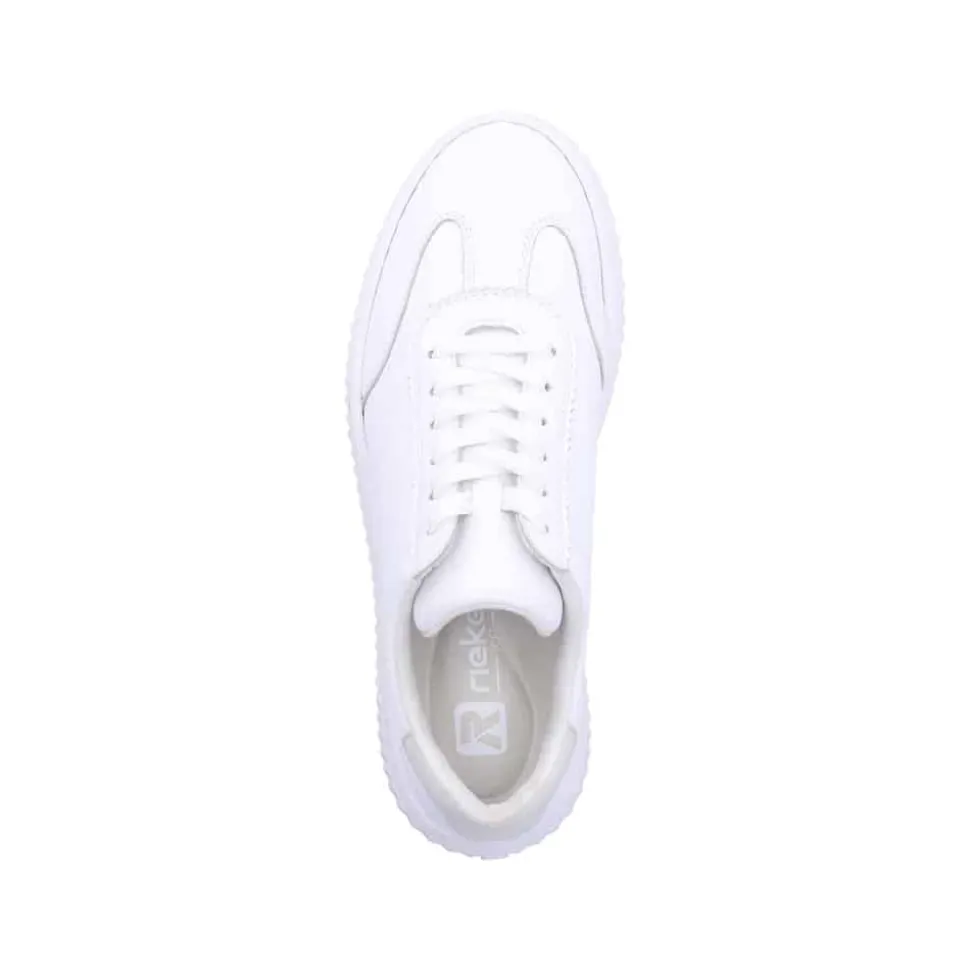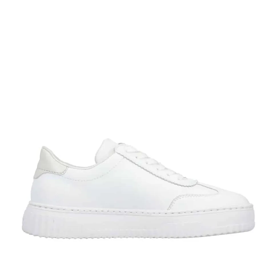 Rieker sneakers til dame i hvid. Smarte sneakers i hvid med skindoverdel og et klassisk design, der passer godt til hverdagen. Skoen har snørebånd, som gør det nemt at tilpasse pasformen efter foden. Indvendigt er skoen udstyret med en blød udtagelig sål, der sikrer høj komfort hele dagen. Ydersålen har et mønster, som giver øget stabilitet og stødabsorbering ved daglig brug.
