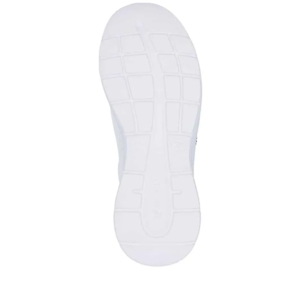 Rieker sneakers til dame i hvid. Let og fleksibel sneakers i en flot hvid farve med enkle detaljer der giver et smart udtryk. Skoen har snørebånd foran som gør det nemt at komme i og af samt justere pasformen efter foden. Indvendigt mødes du af en blød og udtagelig Rieker-Soft sål der sikrer optimal komfort hele dagen. Skoen er udstyret med en Rieker-Light+ sål som giver en let følelse og effektiv stødabsorbering, hvilket gør den behagelig også på lange dage.