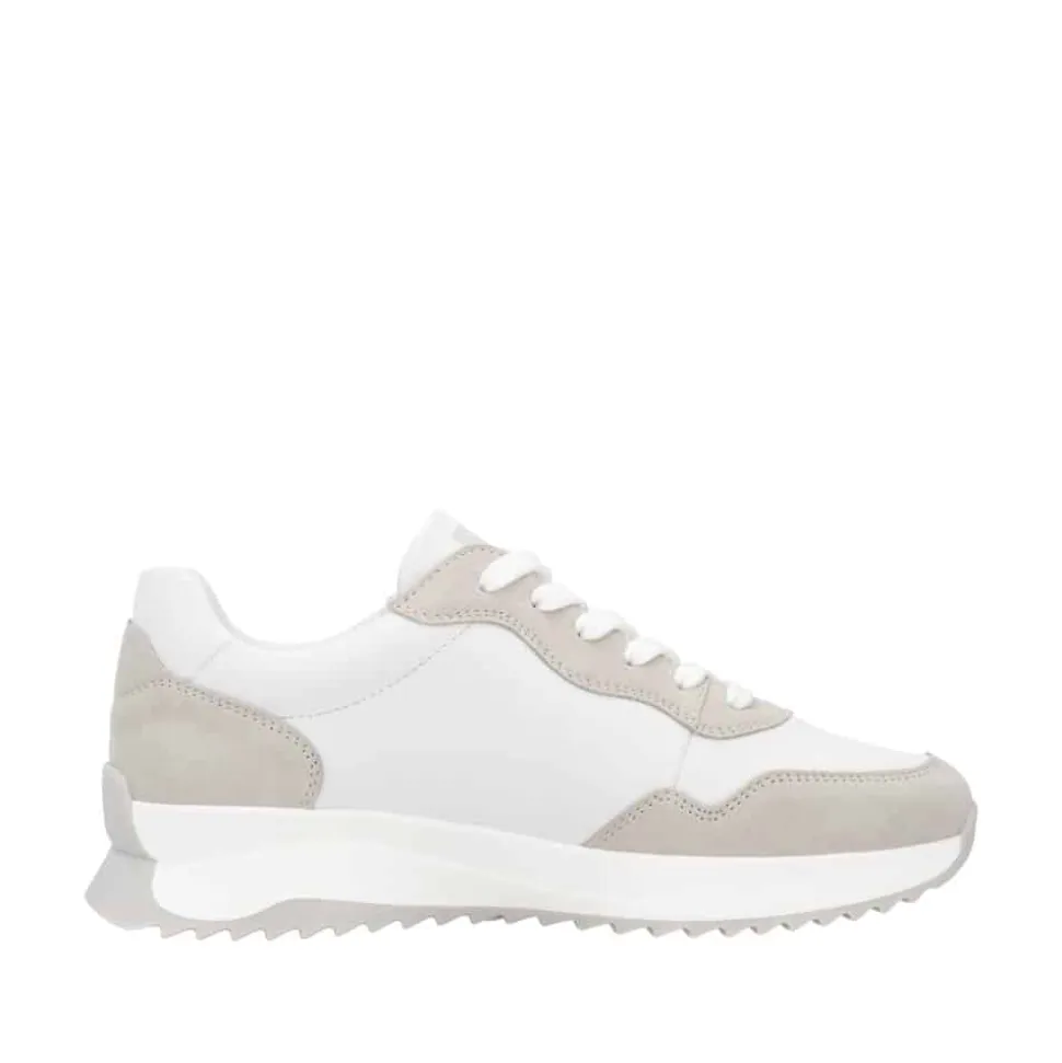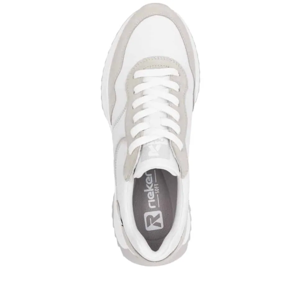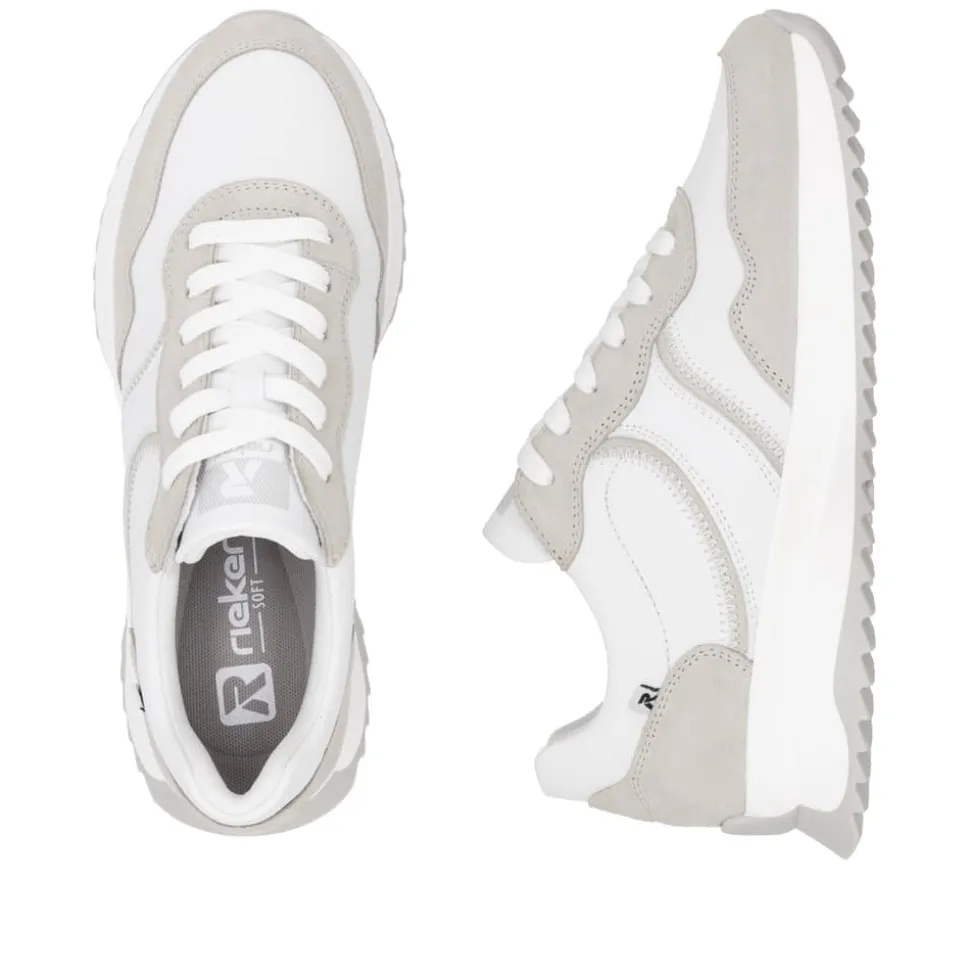 Rieker sneakers til dame i hvid. Disse sneakers er fremstillet med en overdel af højkvalitets glat læder og er skabt til at forene stil og funktionalitet. Den robuste og skridsikre TR-sål sikrer et solidt greb, hvilket gør dem ideelle til daglig brug. Med polstrede, stødabsorberende og udtagelige indlægssåler får du optimal komfort og fleksibilitet ved hvert skridt. Indvendigt er skoene foret med åndbart og let Microvelour-Drysport-materiale, som holder dine fødder friske og behagelige hele dagen. Den klassiske snørelukning giver en god pasform, mens det elegante design gør skoene velegnede til både afslappede og aktive dage.