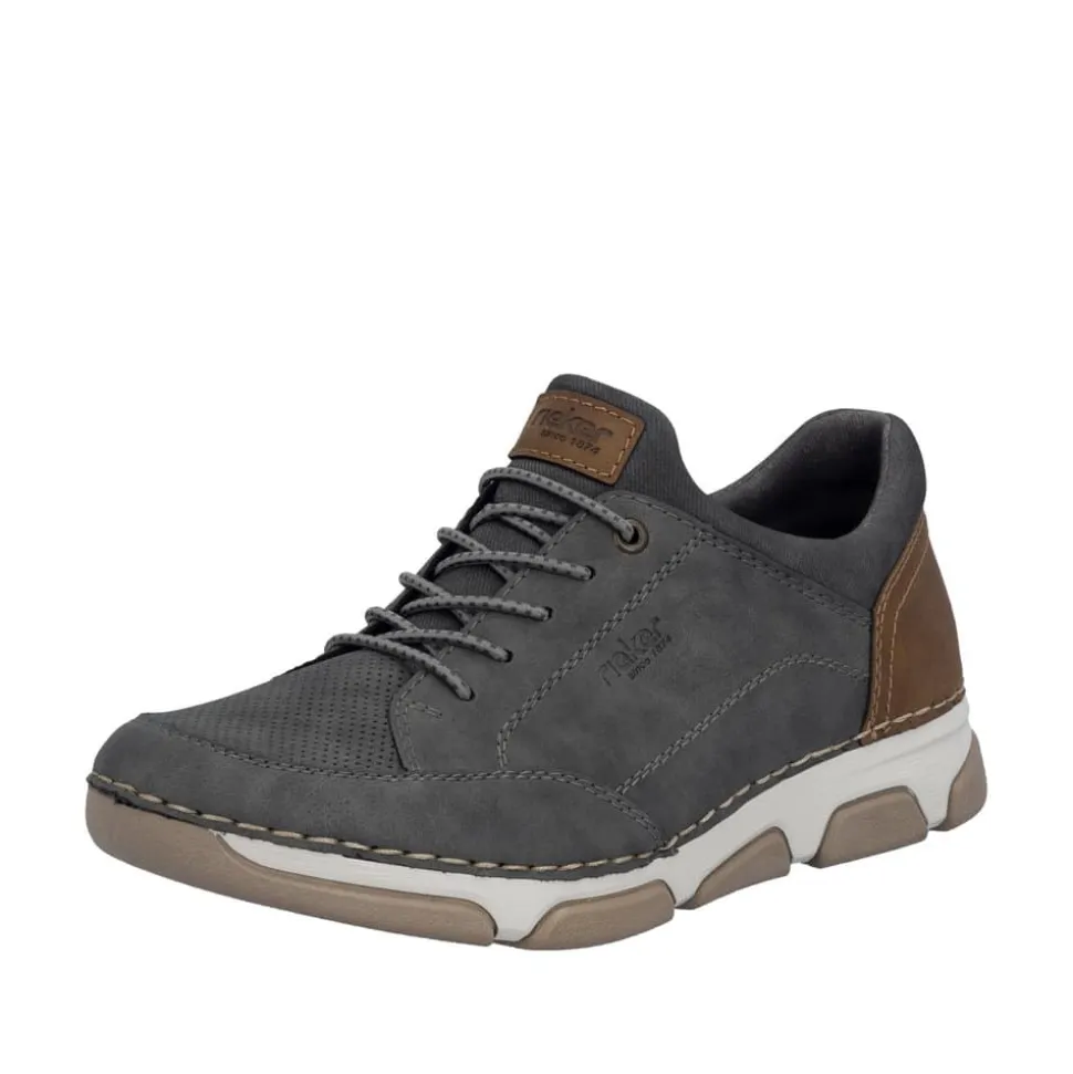 Rieker sneakers til herre i grå. Moderne og lette sneakers i grå, designet med elastik over vristen, som giver en behagelig pasform og gør skoen nem at komme i og af. Indvendigt er skoen udstyret med en blød udtagelig sål, mens ekstra bredde (H) sikrer god rummelighed til foden. Ydersålen har et mønster, som giver øget stødabsorbering og skridsikkerhed i hverdagen.