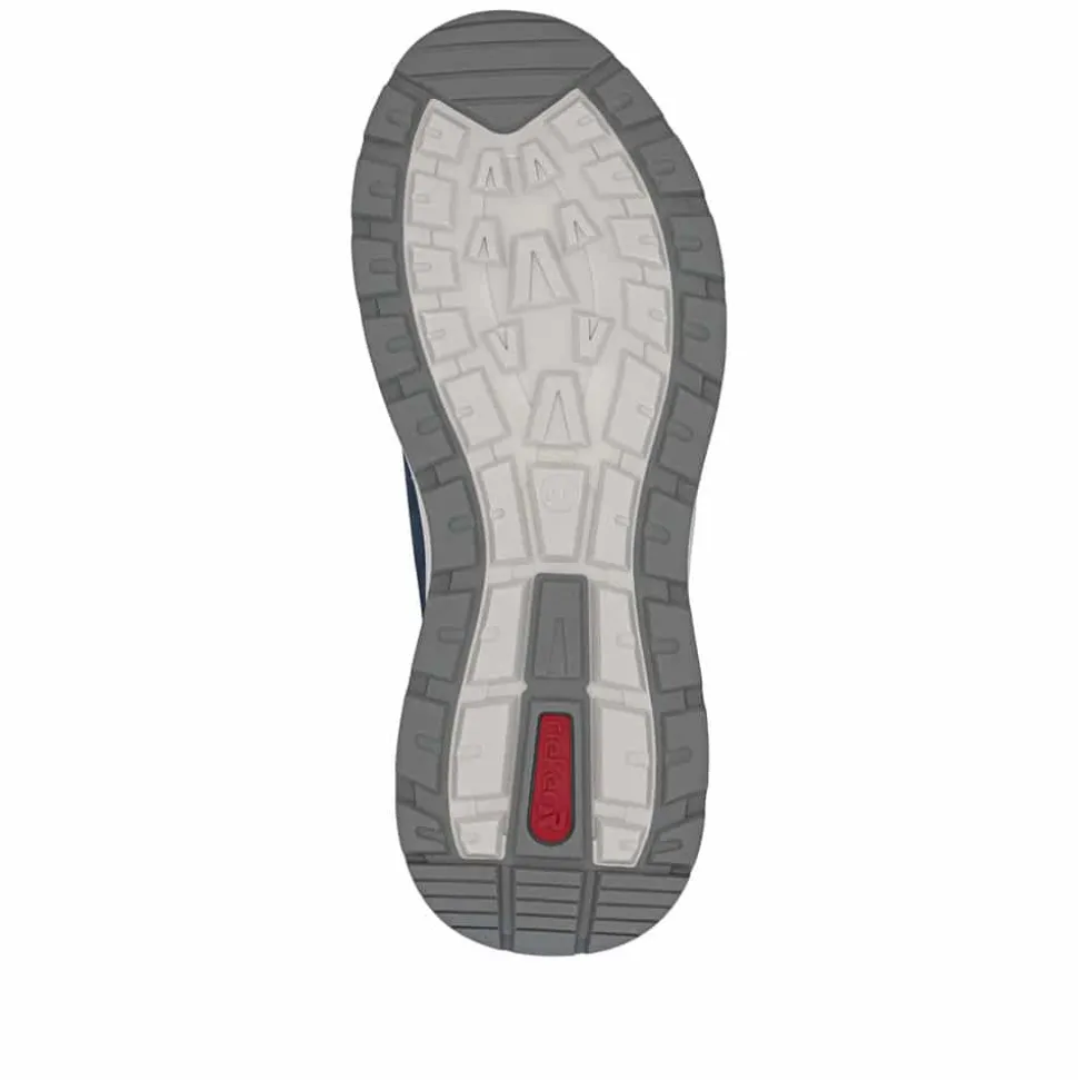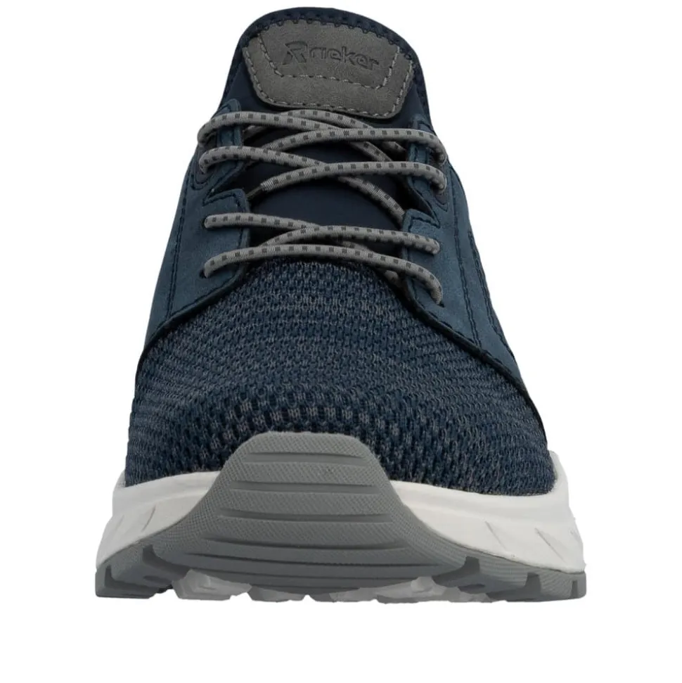 Rieker sneakers til herre i blå. Smarte sko med funktionelle detaljer, der gør dem ideelle til hverdagsbrug. Modellen er udstyret med elastik, som gør det nemt at komme i og af skoen. Indvendigt finder du en blød og udtagelig sål, der giver høj komfort hele dagen, mens ekstra bredde (H) sørger for god rummelighed til foden. Ydersålen er designet med et mønster, som giver øget skridsikkerhed og stabil støtte dagen igennem.