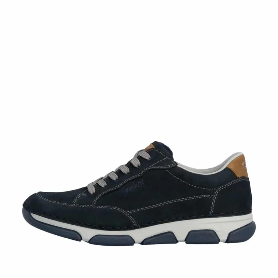 Rieker sneakers til herre i mørkeblå. Flotte og elegante sko med skindoverdel og fine detaljer, der giver et stilfuldt udtryk til både hverdag og pænere brug. Skoen har både snørebånd og en funktionel lynlås, som gør det let at komme i og af og samtidig giver mulighed for at justere pasformen. Indvendigt er skoen udstyret med en blød og udtagelig sål samt ekstra bredde (H), der sikrer høj komfort hele dagen. Ydersålen er designet med et mønster, som giver øget støtte og skridsikkerhed i hvert skridt.